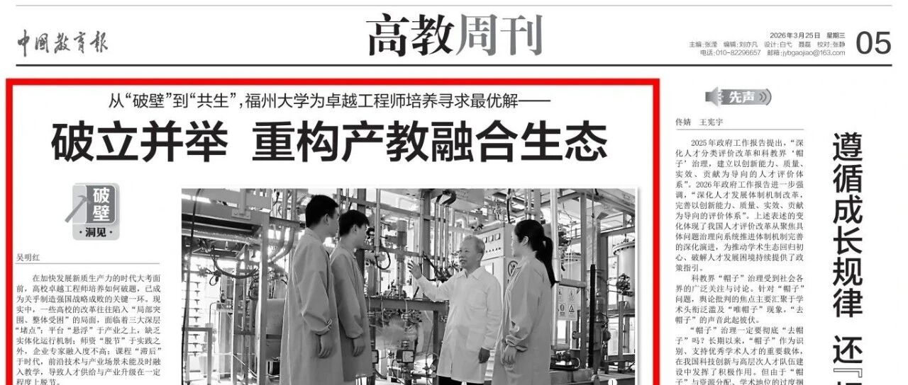 《中国教育报》刊发福州大学党委书记、校长吴明红院士署名文章