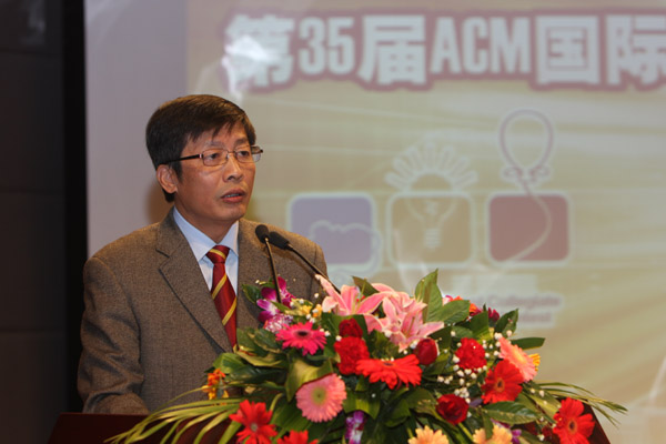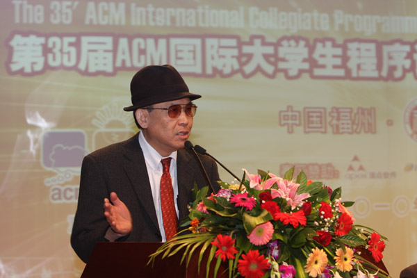 开幕式上,福州大学校长付贤智院士致欢迎词,代表福州大学和大赛组委会对齐聚福大的参赛队员、教练及各位领导表示热烈的欢迎,对IBM集团、阿拉巴巴等赞助商的大力支持表示衷心的感谢,福州大学将以此次大赛为契机,加深与国内各大高校计算机领域的交流与合作,进一步提升学科水平,最后预祝此次大赛取得圆满成功。ACM/ICPC亚洲区竞赛组委会主席黄金雄教授介绍了十几年来ACM大赛在中国大陆的发展历程,并代表ACM亚洲区竞赛组委会授权福州大学筹备、组织、扩大ACM华南区四省到六省地区组委会的竞赛筹备工作。福州大学党委书记陈笃彬研究员宣布第35届ACM国际大学生程序设计竞赛亚洲预选赛福州站开幕。福建省教育厅吴仁华副厅长、福建省信息局邵玉龙副局长、福建省计算机学会理事长王晓东教授、阿里巴巴集团高级技术专家曾宪杰先生、福州大学高诚辉副校长、福州大学教务处处长杨晓翔教授等出席了开幕式。