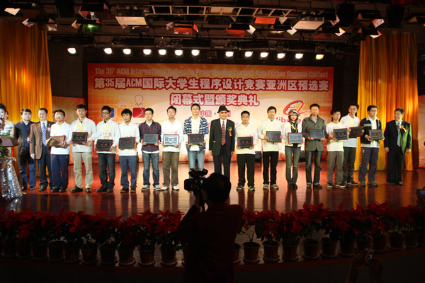 经过激烈角逐,ACM/ICPC亚洲竞赛组委会评定,第35届ACM国际大学生程序设计大赛亚洲赛区(福州站)共评出金奖14个,银奖28个,铜奖41个。除了取得金奖的代表队另外还有来自上海交大、北京大学、福州大学四支代表队由于优异的成绩,同样也获得阿拉巴巴集团颁发的英雄帖,凭此英雄帖,可到淘宝网实习或直接进去淘宝网面试。早在2008年,阿里巴巴集团就曾携手国际程序设计大赛组织ACM在中国展开过“擂台赛”,目前已有三位ACM世界冠军在阿里巴巴集团工作。