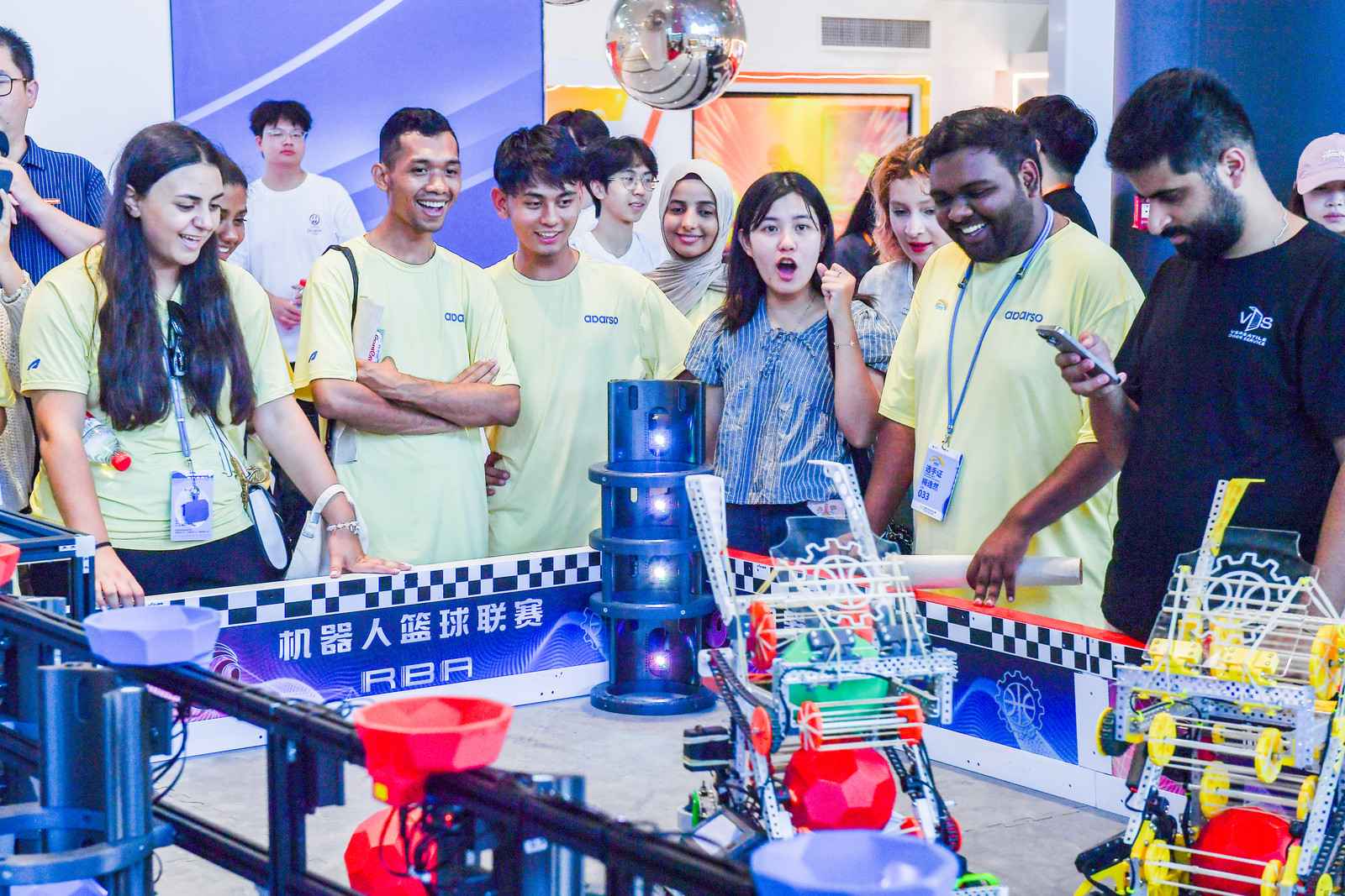 观看机器人篮球对抗赛