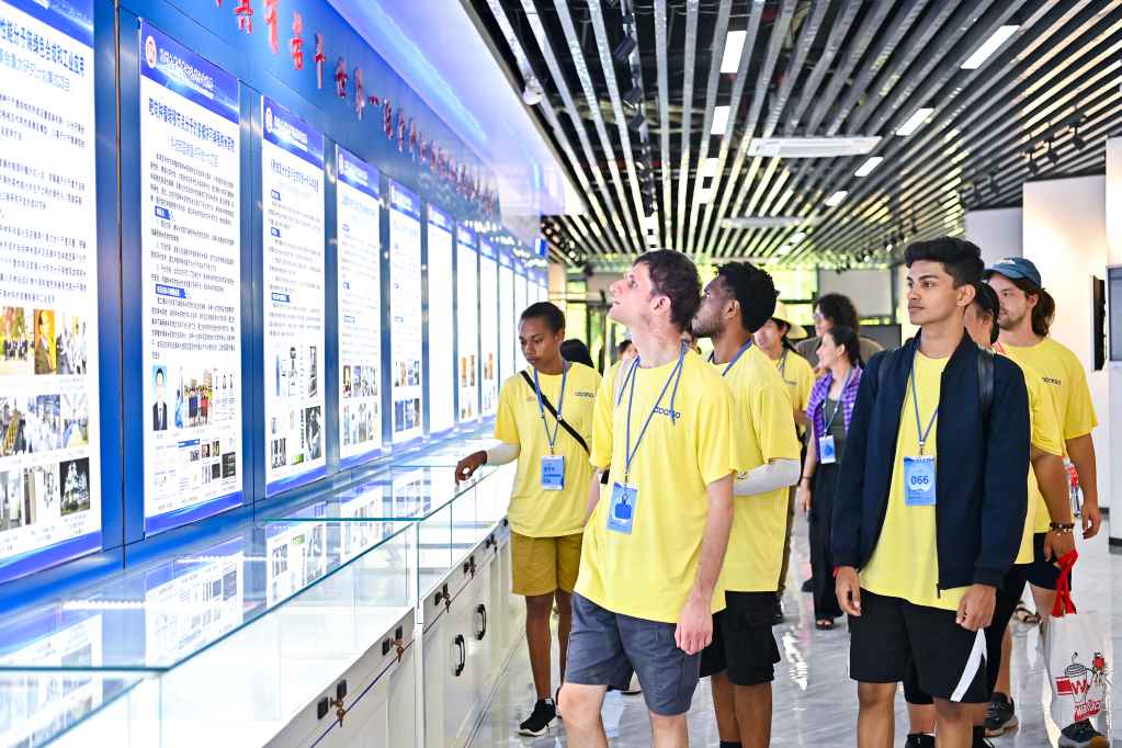 融媒中心讯/8月17日,第24届“汉语桥”世界大学生中文比赛的选手们走进福州大学国家大学科技园,以“数字福大科技行”为主题,与中国青年学子面对面交流,近距离感受高校科技创新的魅力。从智能制造到工业互联,从人机协作到数字治理,这场融合了科技与语言、文化与智慧的“双向奔赴”,让来自世界各地的青年们体验了一场独特的科技文化之旅。