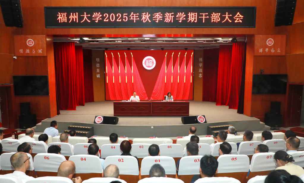 融媒中心讯/9月5日上午,福州大学2025年秋季新学期干部大会在旗山校区图书馆博学厅召开。校党委书记陈国龙、校长吴明红院士出席会议并讲话,全体在家校领导、全校处级干部、科级干部参会。会议全面总结上半年工作成效,深入分析当前发展短板,部署下半年及“十五五”规划编制关键任务,为学校冲刺“十四五”收官、谋划“十五五”开局凝聚力量。