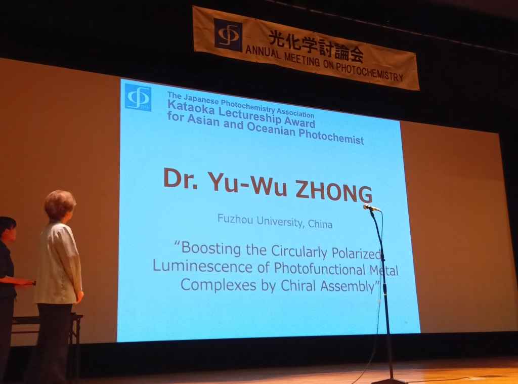 融媒中心讯/近日,在日本东京举行的日本光化学协会2025年度会议上,福州大学化学学院“分子工程+”研究院钟羽武教授荣获日本光化学协会(Japanese Photochemistry Association, JPA)设立的“亚洲及太平洋地区Kataoka光化学家讲座奖”。作为本年度唯一获奖者,钟羽武教授在会议上作了获奖报告,并接受日本光化学协会主席Masako Kato教授为其颁发的获奖证书,表彰其在“手性组装增强光功能金属配合物圆偏振发光”方面所做的开创性工作。