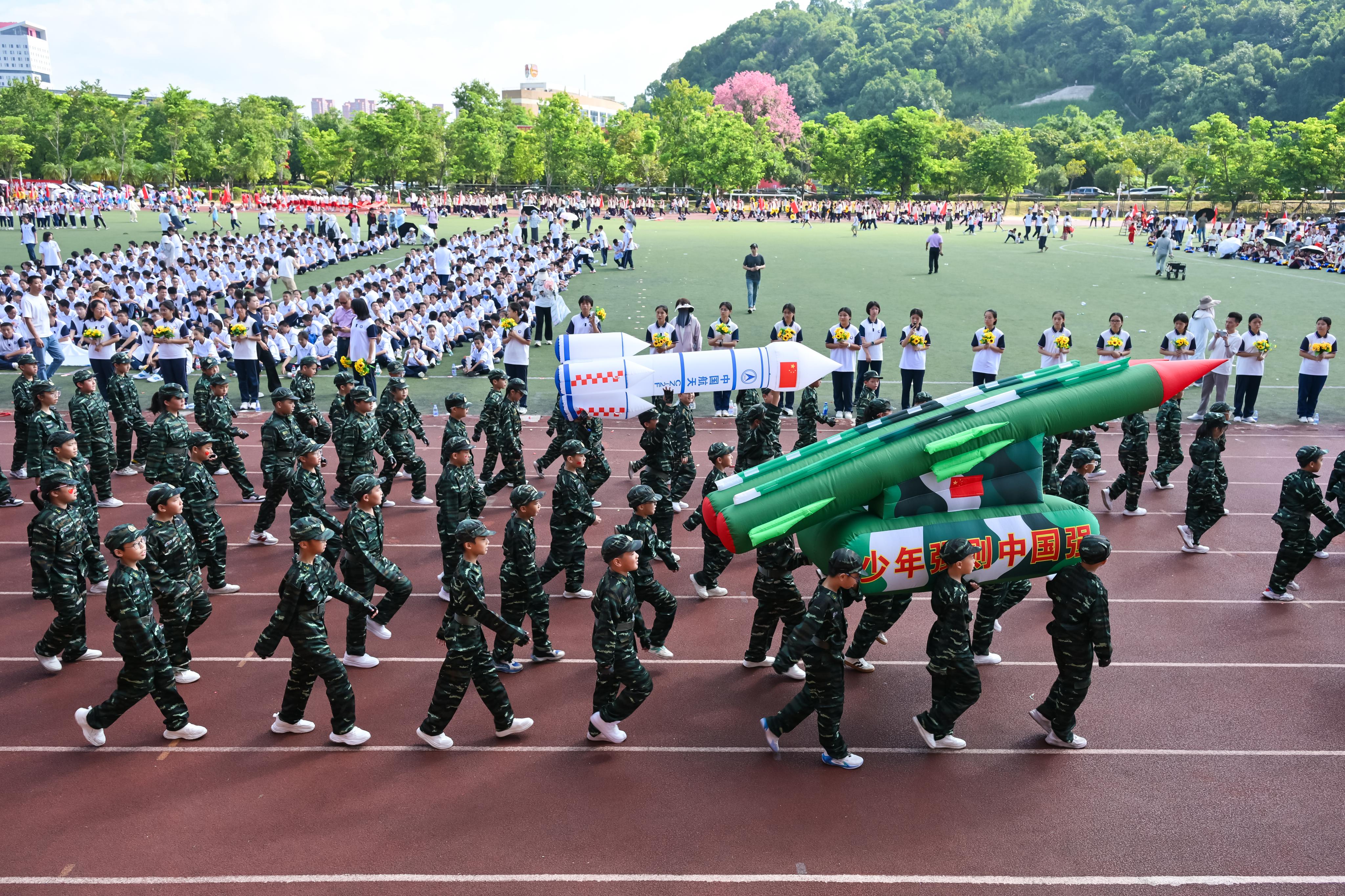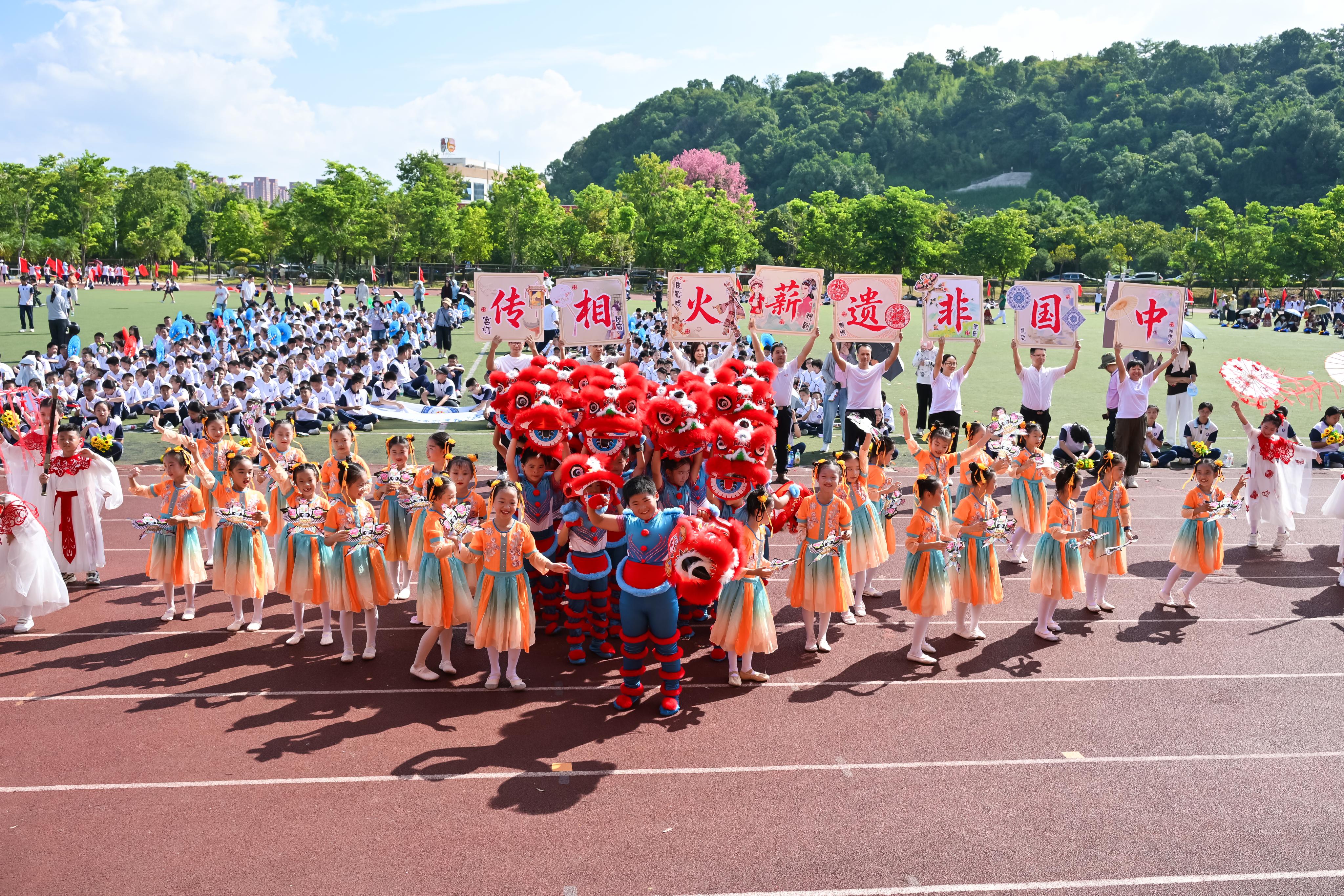 随着和平鸽与五彩气球腾空绽放,《我爱你中国》的激昂旋律响彻全场,现场氛围迅速升温。舞龙舞狮队以灵动身姿演绎雄狮腾跃、祥龙穿梭,铿锵鼓点传递蓬勃力量。福建农林大学牛仔舞表演者踏着欢快节奏起舞,用活力舞姿点燃全场热情。最后,各班级的方阵依次入场,同学们身着统一整齐的服装,喊着响亮的口号,迈着矫健的步伐走过主席台,展现出新时代少年的朝气与风采。其中,既有同学带来绚丽夺目的个人才艺表演,也有动感活泼的舞蹈,精彩不断,亮点纷呈,充分展现了附属学校师生的活力与校园文化特色。(周莹)
