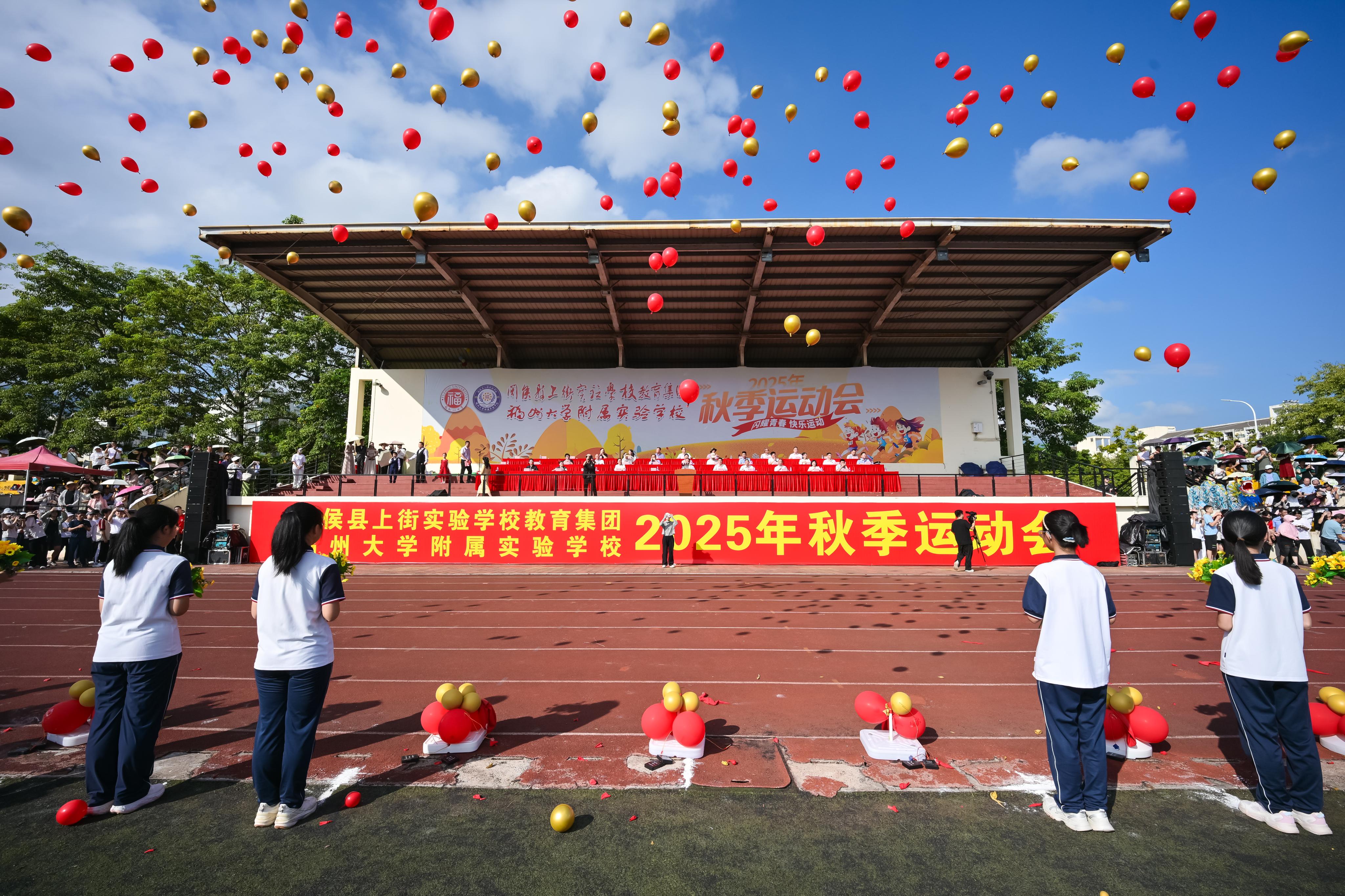 融媒中心讯/10月15日上午,福州大学附属实验学校2025年秋季运动会开幕式在福州大学旗山校区田径场举行。福州大学党委书记陈国龙,中共福建省委党校副校长游祖烟,闽侯县委常委、宣传部部长张裴雷,闽侯县教育局局长林巧燕,福州市公安局上街(高新区)分局副局长郑德宁等出席开幕式,福建农林大学、福建理工大学、福建江夏学院、闽江学院等兄弟高校代表及福州大学相关职能部门负责人共同参与这场秋日盛会。