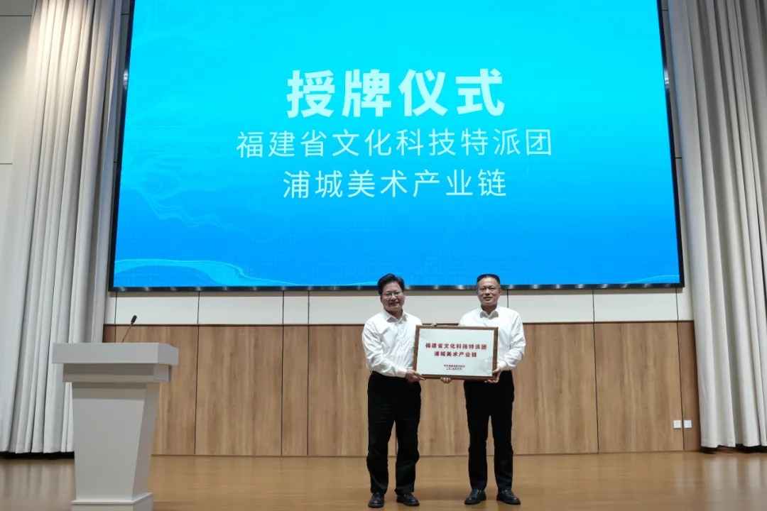 会上举行了福建省文化科技特派团(浦城美术产业链)授牌仪式。特派团负责人、福州大学厦门工艺美术学院副院长张健汇报了美术产业链工作对接进展情况和下一步工作安排。