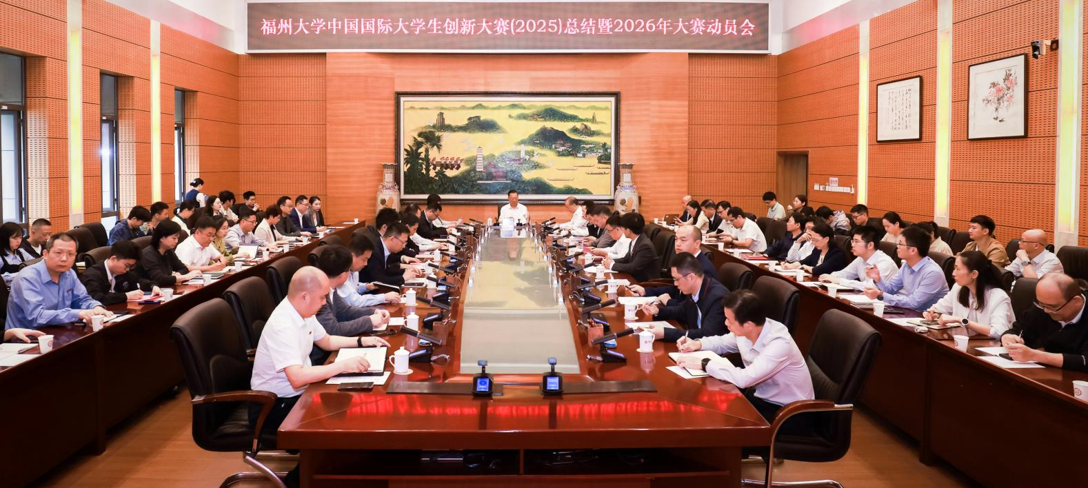 融媒中心讯/10月24日上午,福州大学中国国际大学生创新大赛(2025)总结暨2026年大赛动员会在旗山校区行政南楼举行。校党委书记陈国龙、副书记王向阳出席会议。会议由王向阳副书记主持。