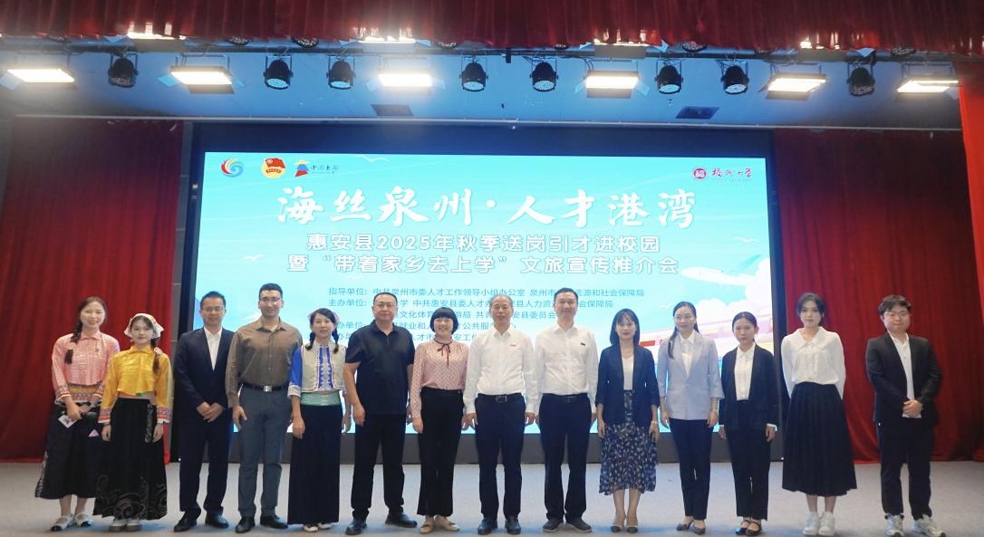 活动期间,先后举办了以“海丝泉州·人才港湾”“带着家乡去上学”为主题的文旅宣传推介会以及专场招聘会等一系列活动。我校惠安籍学子对家乡文旅资源进行了生动推介,参会企业代表详细介绍了招聘需求与企业文化。校企双方代表共同签署了人才合作框架协议,并一同巡看招聘会现场。