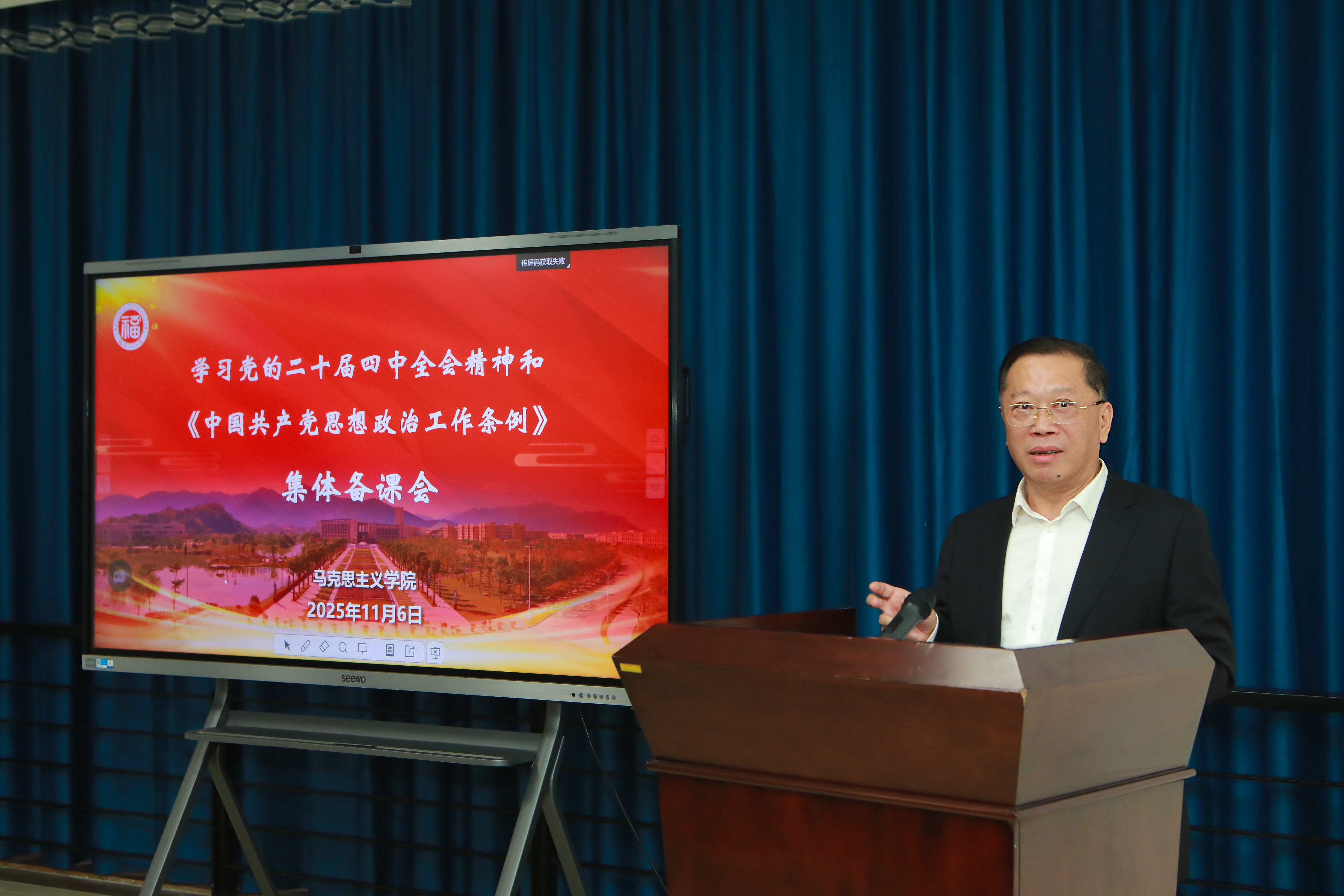 校党委书记陈国龙作总结讲话。他对本次高质量集体备课会给予充分肯定,强调要深刻把握党的二十届四中全会精神与《条例》精神的内在统一,从党的二十届四中全会精神中汲取政治智慧,从《条例》中找到工作遵循,把党中央对思想政治工作的总体要求贯穿于学院发展的各环节、各领域、全过程。要立足学校特色,发挥学科优势,加强研究阐释,提升对党的思想政治工作的规律性认识,把党中央的决策部署融入立德树人全过程,把党的创新理论转化为推动思政课内涵式高质量发展的强大精神动力。要把思想政治工作贯穿到理论学习、教育教学、科研创新和师生成长全过程,以更高的政治自觉、更实的工作举措、更强的使命担当,推动思想政治工作提质增效,打造新时代思想政治工作的“福建样板”“福大品牌”。