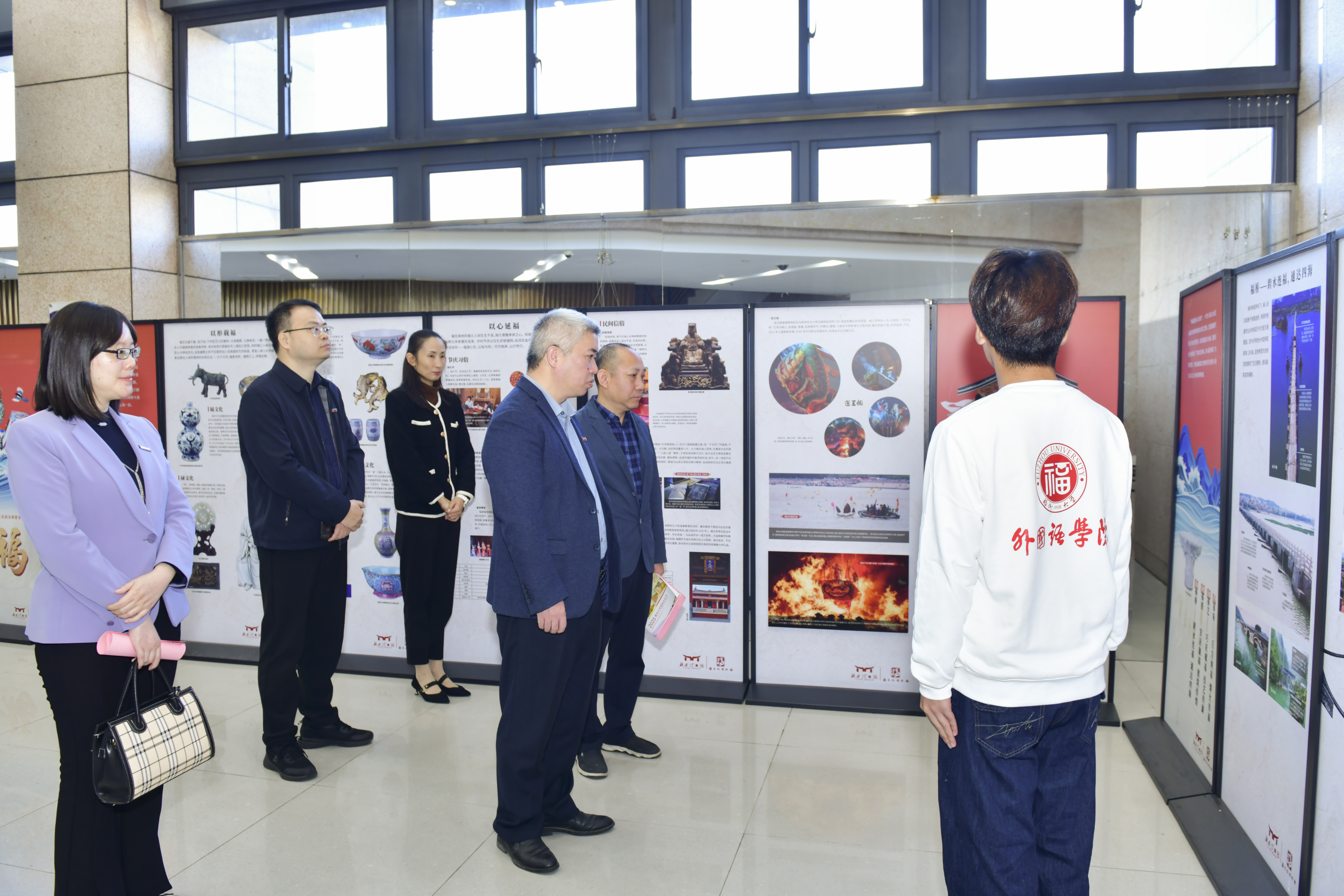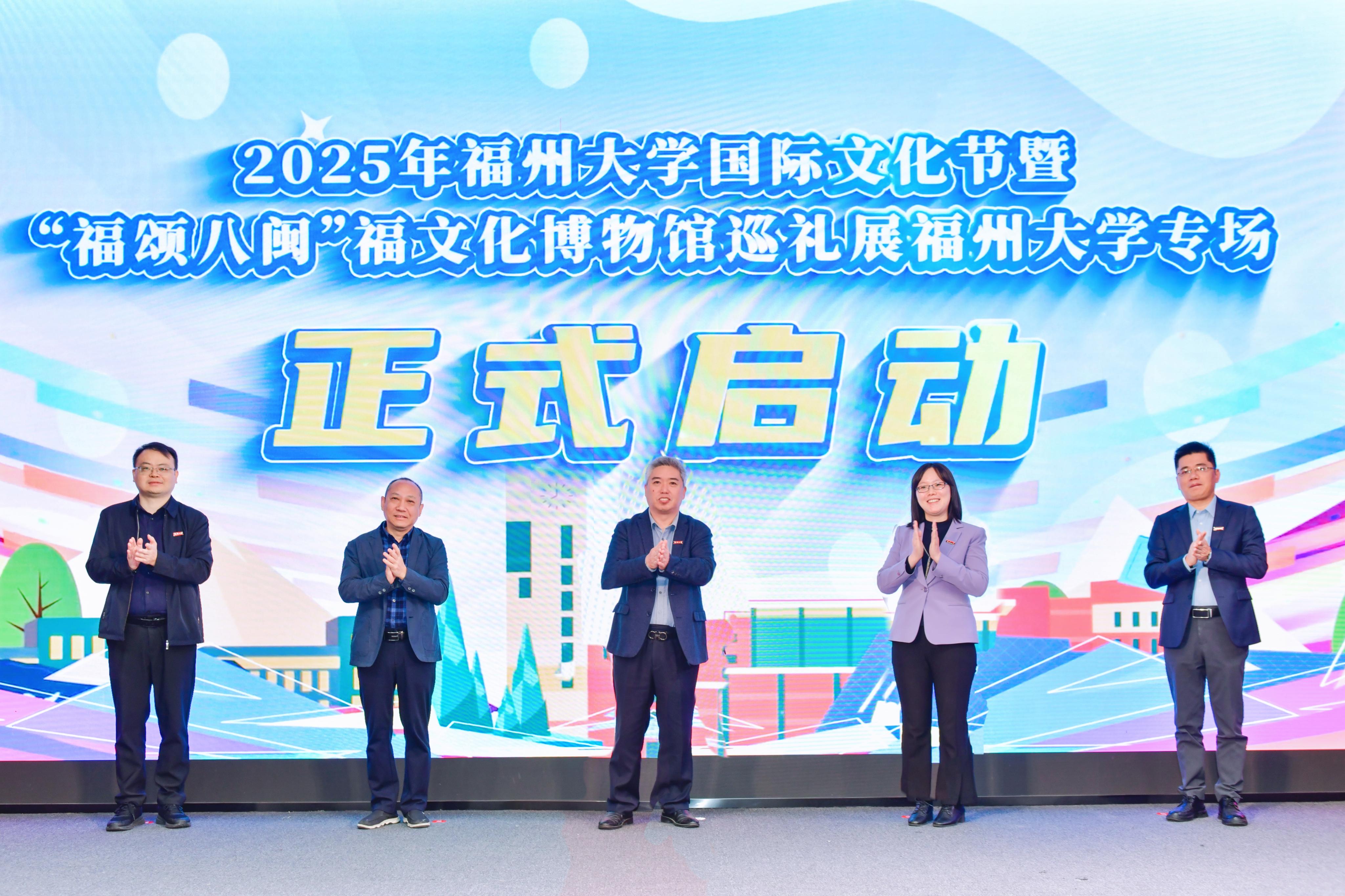 融媒中心讯/为深入贯彻落实党的二十届四中全会“要弘扬和践行社会主义核心价值观,大力繁荣文化事业,加快发展文化产业,提升中华文明传播力影响力”的部署,坚持不懈用习近平新时代中国特色社会主义思想凝心铸魂,11月23日上午,由福州大学党委宣传部、学生工作部(处)、外国语学院主办的“文明互鉴·福泽四海”国际文化节暨“福颂八闽”福文化流动博物馆巡礼展校园专场启动仪式在旗山校区图书馆博学厅举行。福建博物院副院长龚张念、福州大学副校长邱挺出席启动仪式。启动仪式由外国语学院负责同志主持。