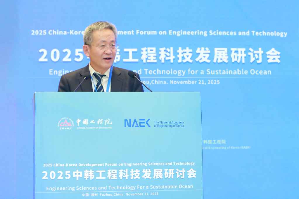 融媒中心讯/11月20日-22日,由中国工程院和韩国国家工程院联合主办的“2025中韩工程科技发展研讨会”在福州举办。研讨会以“工程科技助力海洋可持续发展”为核心主题,汇聚了中韩两国工程科技领域的专业力量,旨在深化两国在海洋科技领域的交流合作,共商海洋资源可持续利用与绿色发展大计。中国工程院院长李晓红院士、副院长李仲平院士,韩国国家工程院院长尹義埈院士,副院长韓承憲院士出席会议并致辞。中国工程院院士、福州大学校长吴明红,韩国海洋科学与技术研究院院长李熙承在大会上作主旨报告,福州大学副校长张亚雷等来自中韩双方的专家学者参加会议。