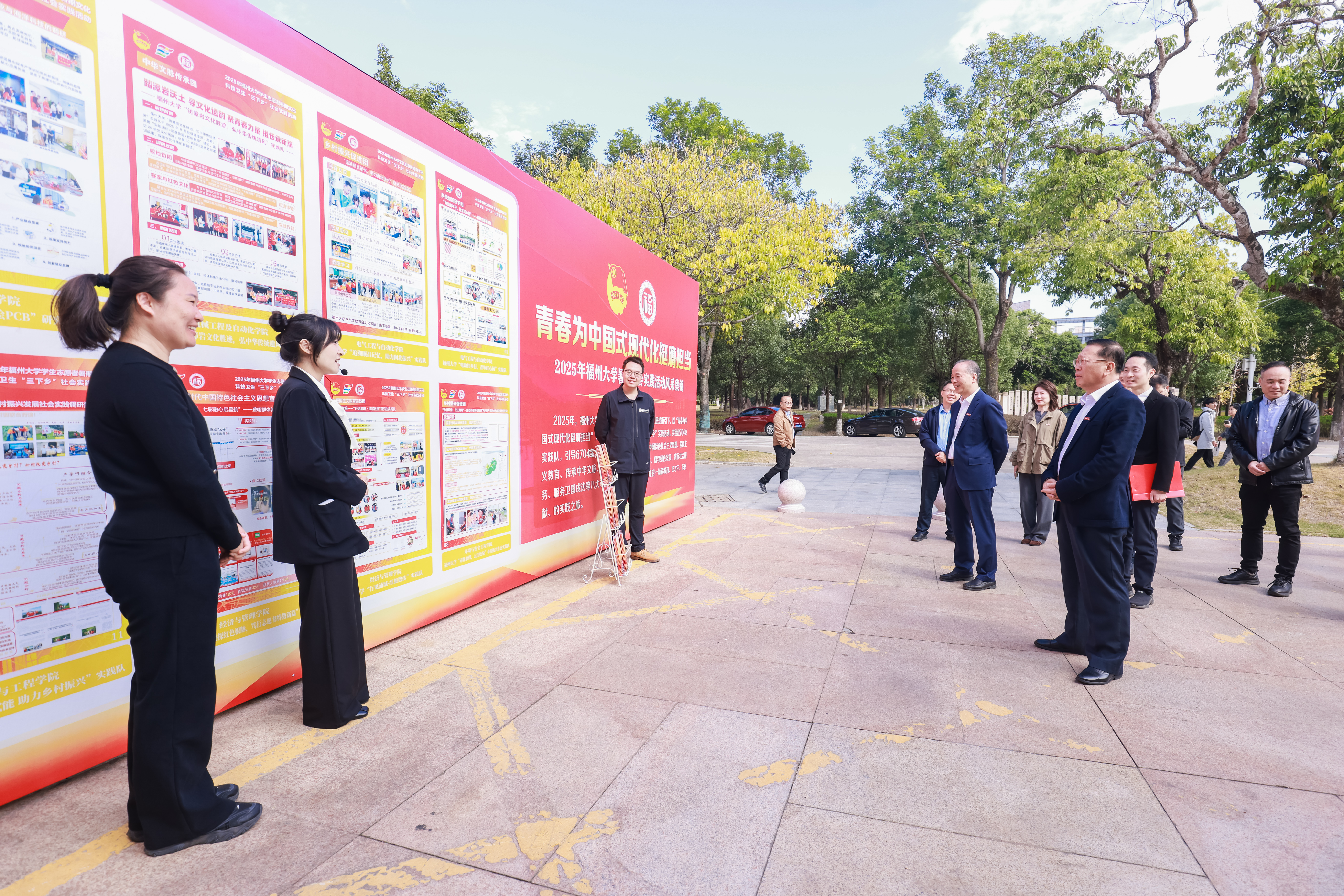 随后,陈国龙书记、王向阳副书记共同为福州大学青年之家揭牌。与会领导和青年师生代表们一同参观了青年之家室内展馆,我校青马讲解员向与会人员汇报了共青团在组织育人、科创育人、实践育人和文化育人等方面的建设成果。
