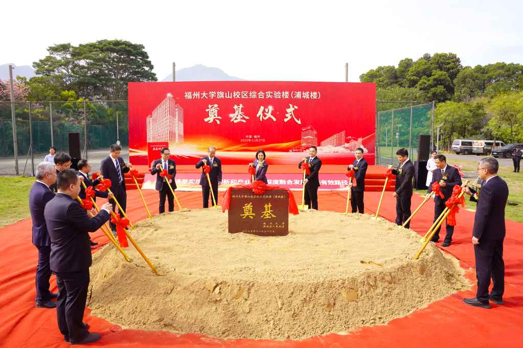 随后,校地双方领导嘉宾共同挥锹培土,为福州大学旗山校区综合实验楼(浦城楼)奠基。