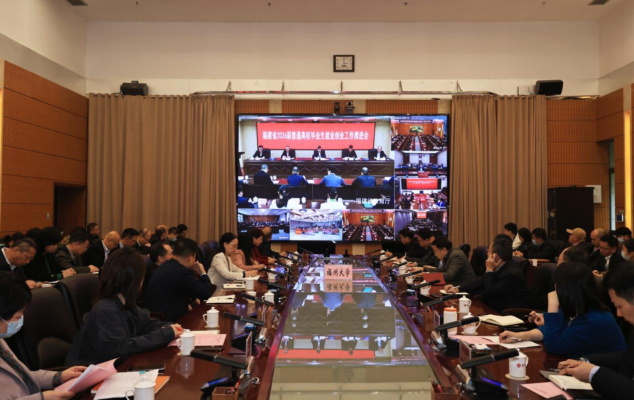 融媒中心讯/12月3日下午,省教育厅、省人社厅联合召开福建省2026届普通高校毕业生就业创业工作推进会,福州大学在旗山校区行政南楼123会议室设立分会场。校党委书记陈国龙、副书记王向阳出席会议。