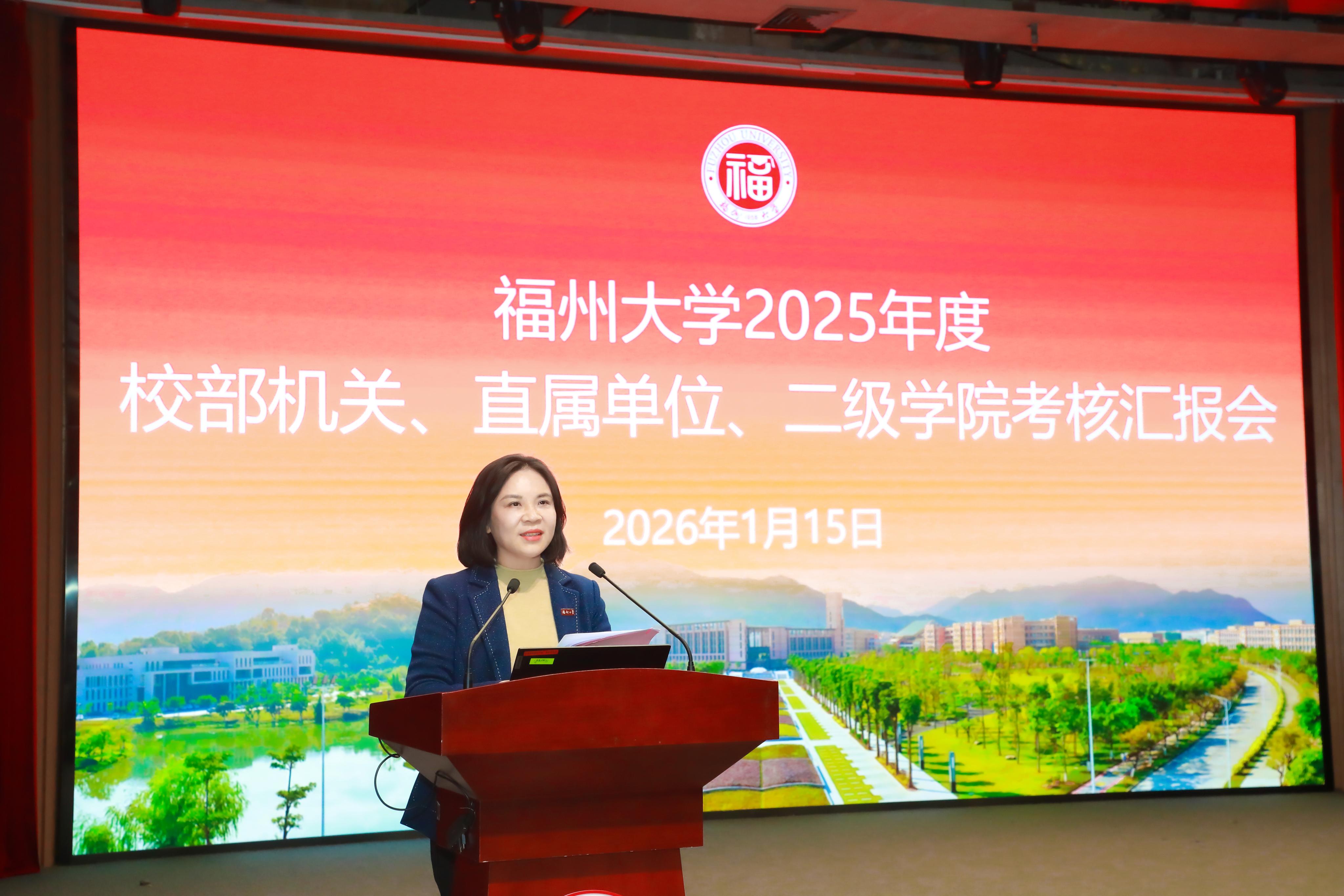 在听取汇报后,校党委书记、校长吴明红院士进行点评。吴明红书记总结了福大人展现出的“顶天立地”的格局担当、“敢闯会创”的奋斗精神、“和衷共济”的团队力量这三种宝贵特质,充分肯定了2025年度校部机关、直属单位、二级学院的工作业绩。同时,她对新一年的工作提出三点要求:希望大家以“归零”心态再出发,在更高坐标中找准新方位;以“竞进”姿态谋突破,在改革创新中激发新动能;以“笃行”状态抓落实,在求真务实中展现新作为。