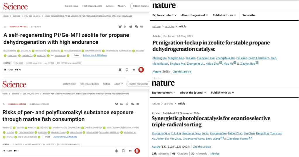 2025年,化工学院、氟氮化工新材料全国重点实验室鲍晓军教授、朱海波教授团队先后在《科学》《自然》发表重要成果。磷矿及其共伴生资源绿色高效开发利用全国重点实验室主任吴明红院士团队重要成果刊发于《科学》,化学学院“分子工程+”研究院冯键强副教授的合作研究成果登上《自然》。学校全年以第一或通讯单位发表CNS主刊论文4篇,并列中国内地高校第37位。