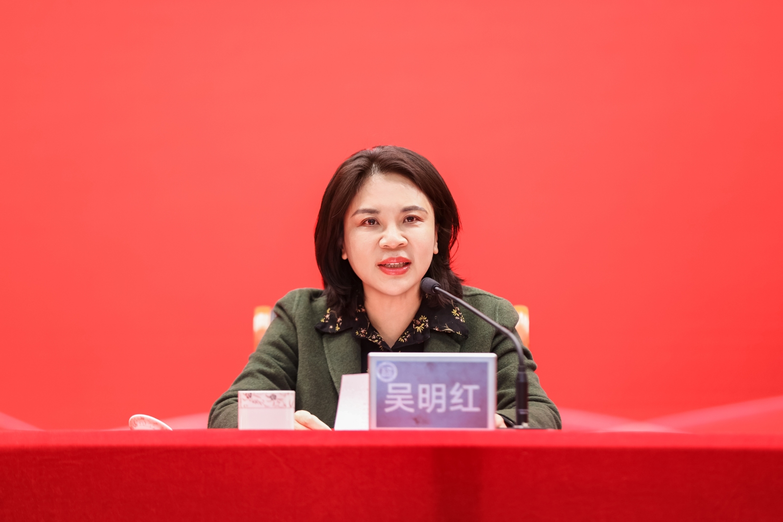 校党委书记、校长吴明红院士作总结讲话。她充分肯定了过去一年学生思想政治教育工作取得的成效,并指出,一年来,学工系统守正创新、协同发力,思想引领入心见行,育人平台扎实落地,成长支持精准对需,协同育人整体显效,交出了一份扎实的“学工答卷”。面向未来,她对学工系统提出三点期望:一是要胸怀“国之大者”,深刻把握新时代思政教育的战略方位。要站在“教育是国之大计、党之大计”的政治高度、“支撑引领中国式现代化”的战略高度、“新一轮‘双一流’建设成败关键”的实践高度认识和把握立德树人根本任务。二是要直面时代变革,清醒认识思政教育工作面临的新挑战。当前,数智时代对育人模式带来结构性挑战、代际特征对教育方式提出新的要求,要强化思想引领、价值引领,推动思政工作更具亲和力、个性化、针对性。三是要坚持守正创新,奋力开创思政教育工作高质量发展新局面。要坚持理论铸魂,彰显立德树人的“福大高度”;拓展育人场域,探索立德树人的“福大深度”;聚力内涵提升,展现立德树人的“福大温度”;建强育人队伍,夯实立德树人的“福大力度”。她勉励全体政工干部以此次大会为新起点,以龙马精神昂扬奋进,以快马加鞭的劲头狠抓落实,共同谱写福州大学学生思想政治教育工作高质量发展的崭新篇章。