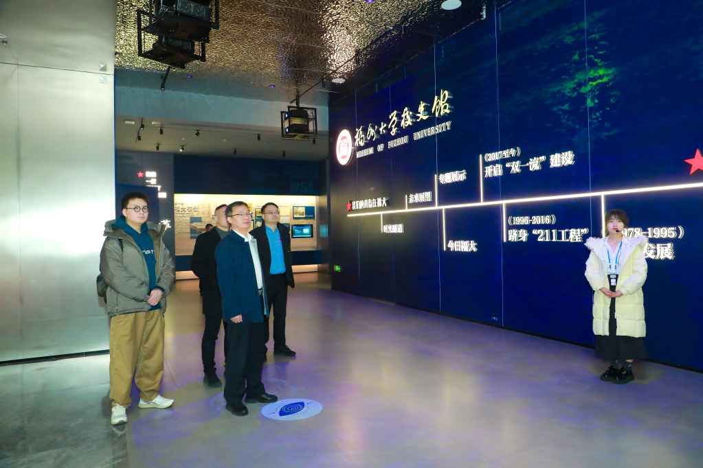 当天上午,李永亮副总经理一行参观了校史馆,通过历史资料、实物展品及文字介绍,深入了解福州大学校史沿革、育人理念与办学成果。李永亮副总经理一行还实地考察了福州大学党建馆、习近平新时代中国特色社会主义思想主题展室、青年之家、刘敏榕工作室,详细了解学校在整合资源、创新模式、拓展阵地等方面推动思政课改革创新,着力打造全员、全过程、全方位、全领域育人新格局的具体举措。