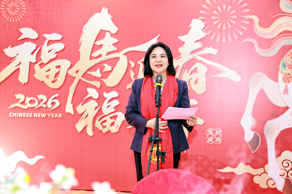 校党委书记、校长吴明红院士代表学校向留校过年的教职工、节日期间依然在岗的教职医护员工及所有支持福大事业发展的奋斗者致以亲切问候和新春祝福。在致辞中,她深情回顾了过去一年学校在党建引领、科研创新、人才培养、服务社会等方面取得的亮眼成绩,以及学校为改善校园环境、提升教职医护员工和学子们的幸福感而作出的努力。吴明红书记感谢每一位福大人用平凡的坚守、无私的奉献汇聚成“福大大福”,并表示,2026年是国家“十五五”规划的开局之年,也是福大推进高质量发展的关键之年,希望广大教职医护员工心往一处想、劲往一处使,把个人的奋斗之“福”融入学校发展的“大福”,跑出加速度、干出新精彩,共同书写福大更加辉煌灿烂的明天!