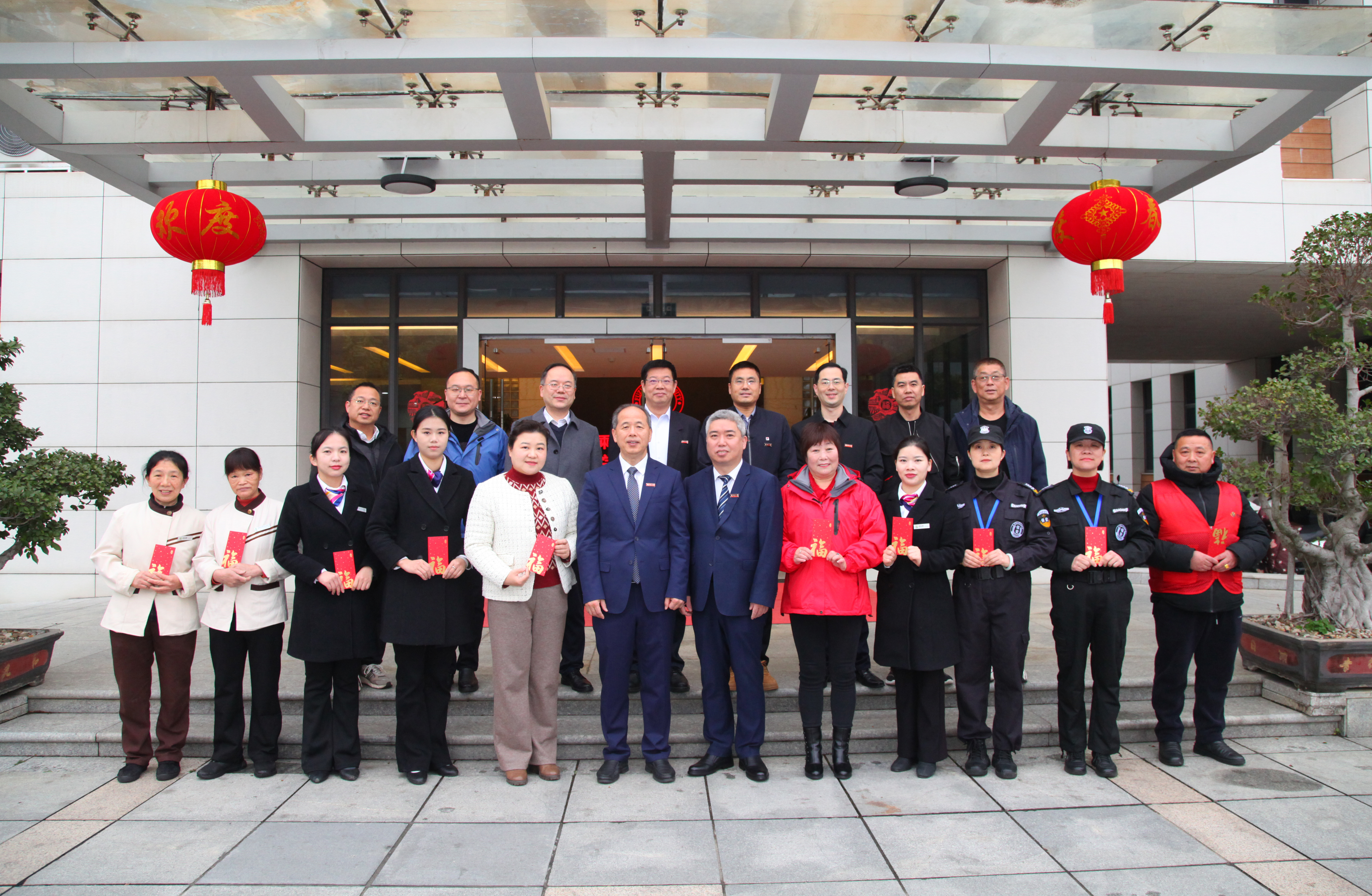 校领导一行先后来到行政南楼总值班室、国家大学科技园、校医院、“一站式”学生服务中心、生活区一区警务室等地,看望慰问行政、学工、保卫、后勤、医疗、物业等岗位的教职医护员工以及怡山派出所干警,感谢大家用辛勤付出守护校园的平安祥和。校领导表示,校园安全稳定是学校一切工作的基石,希望大家继续用心用情做好服务,确保留校师生度过一个温馨欢乐的新春佳节。