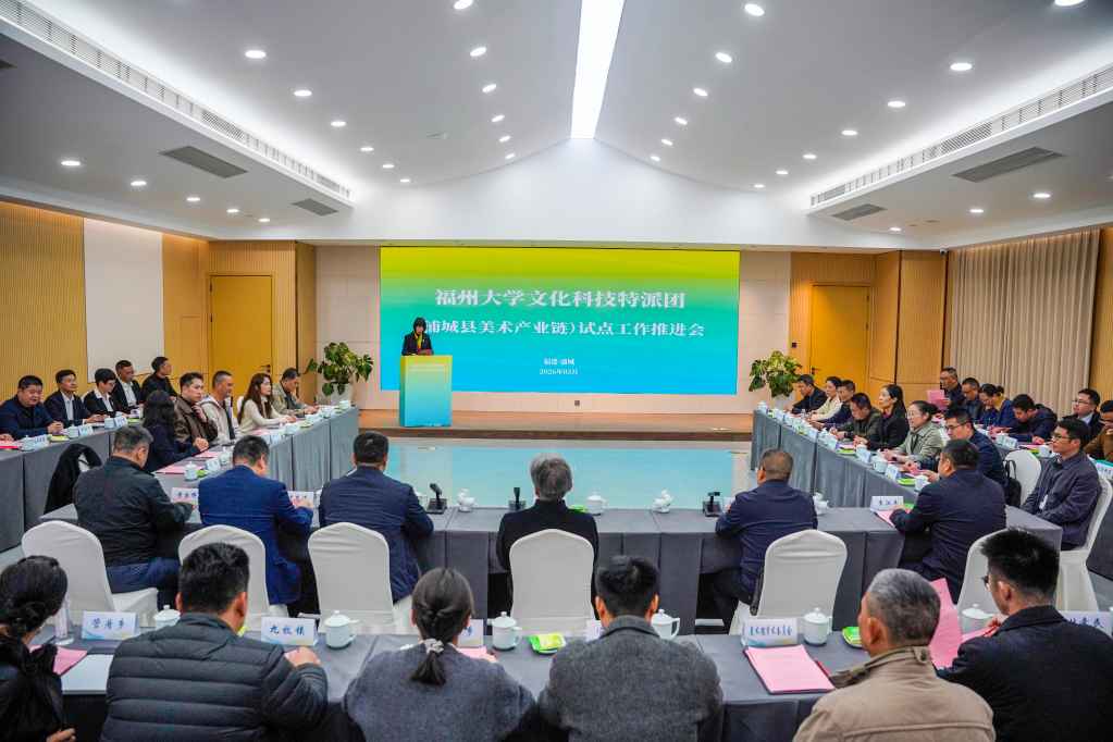 融媒中心讯/3月21日,福州大学文化科技特派团(浦城县美术产业链)工作推进会在浦城县仙阳镇召开。中国美术家协会主席、福州大学文化科技特派团(浦城县美术产业链)专家组组长范迪安,福州大学副校长、特派团副团长王心晨,南平市人大常委会党组成员、副主任陈中民,浦城县委书记李江平出席会议。福州大学党委宣传部、科技开发部、厦门工艺美术学院等单位负责人参会。