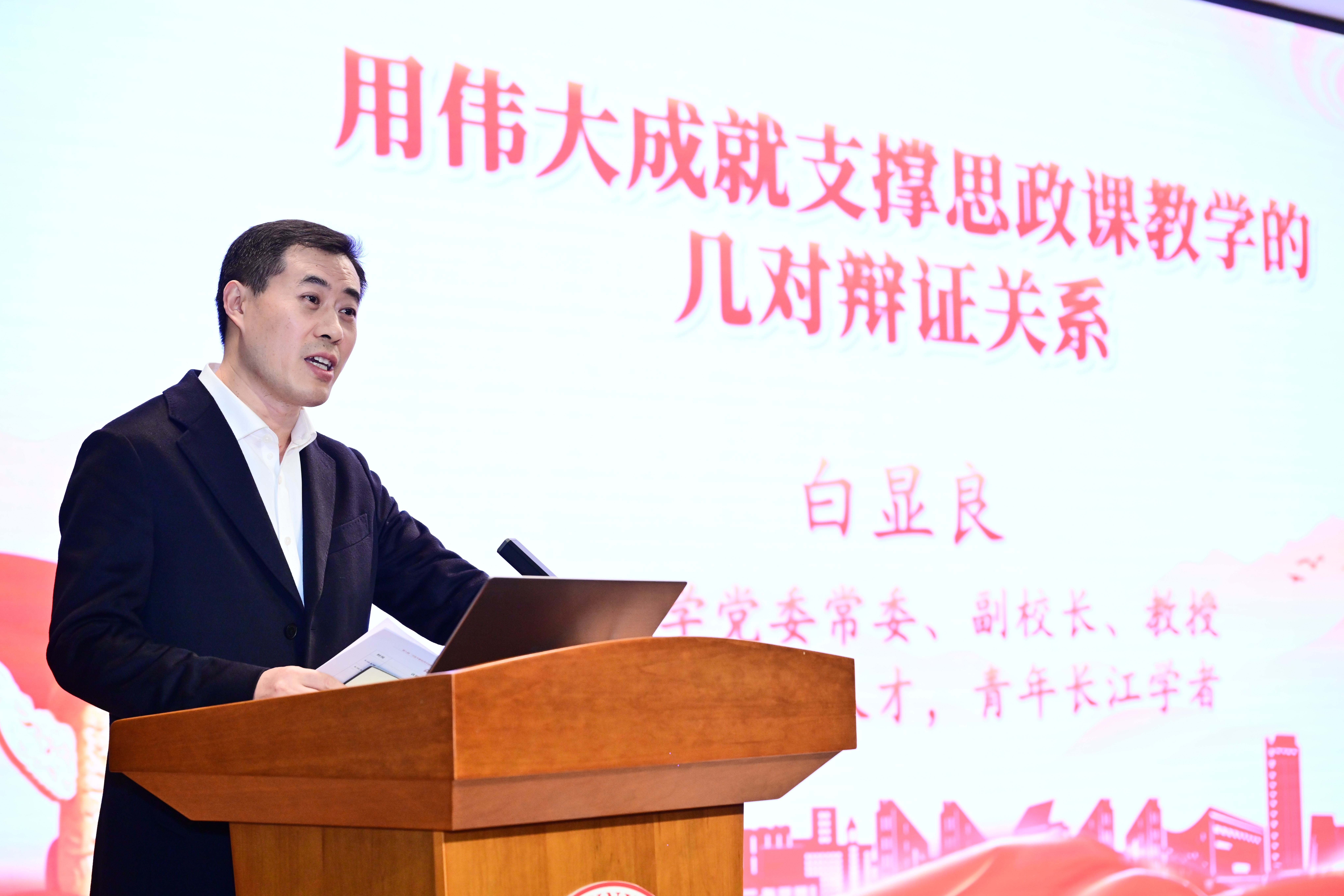 专家报告环节上半场由福州大学马克思主义学院院长詹志华教授主持。西南大学党委常委、副校长白显良教授,山东大学马克思主义学院院长张士海教授,江西师范大学马克思主义学院祝黄河教授,福建省高校思政课教指委主任委员、福建师范大学马克思主义学院郑传芳教授,分别以“用伟大成就支撑思政课教学的辩证关系”“‘概论’课堂教学实践的工作思考”“不断深化中国式现代化理论与实践研究”“学习《习近平谈治国理政》第五卷”为主题内容展开精彩报告,深入阐释思政课教学与马克思主义理论研究和建设工作的高质量协同发展的路径方法。下半场专家报告环节由福州大学马克思主义学院副院长刘有升教授主持。北京大学马克思主义学院副院长陈培永教授,教育部“习近平新时代中国特色社会主义思想概论”分教指委主任委员、天津大学马克思主义学院院长颜晓峰教授,南京师范大学马克思主义学院王跃教授,四川大学马克思主义学院院长蒋永穆教授分别就“党的创新理论体系化学理化研究”“中国化时代化马克思主义自主知识体系与新时代思政课课程体系”“‘概论’课程备课环节的问题思考”“中国式现代化阶梯式递进的逻辑与路径”等主题内容展开精彩报告,共同推动党的创新理论赋能思政课教学工作。