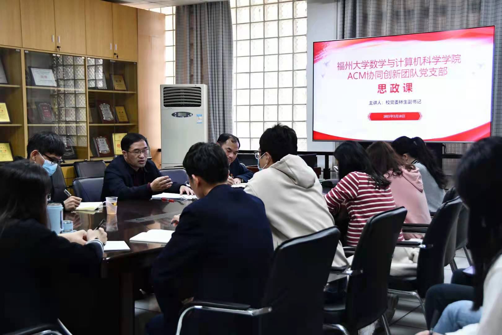 新闻中心讯/3月18日下午,校党委林生副书记为ACM协同创新团队党支部讲授了题为“不忘初心、牢记使命,深入学习贯彻党的十九届五中全会精神”的专题思政课。ACM协同创新团队党支部全体师生党员和入党积极分子聆听了思政课。