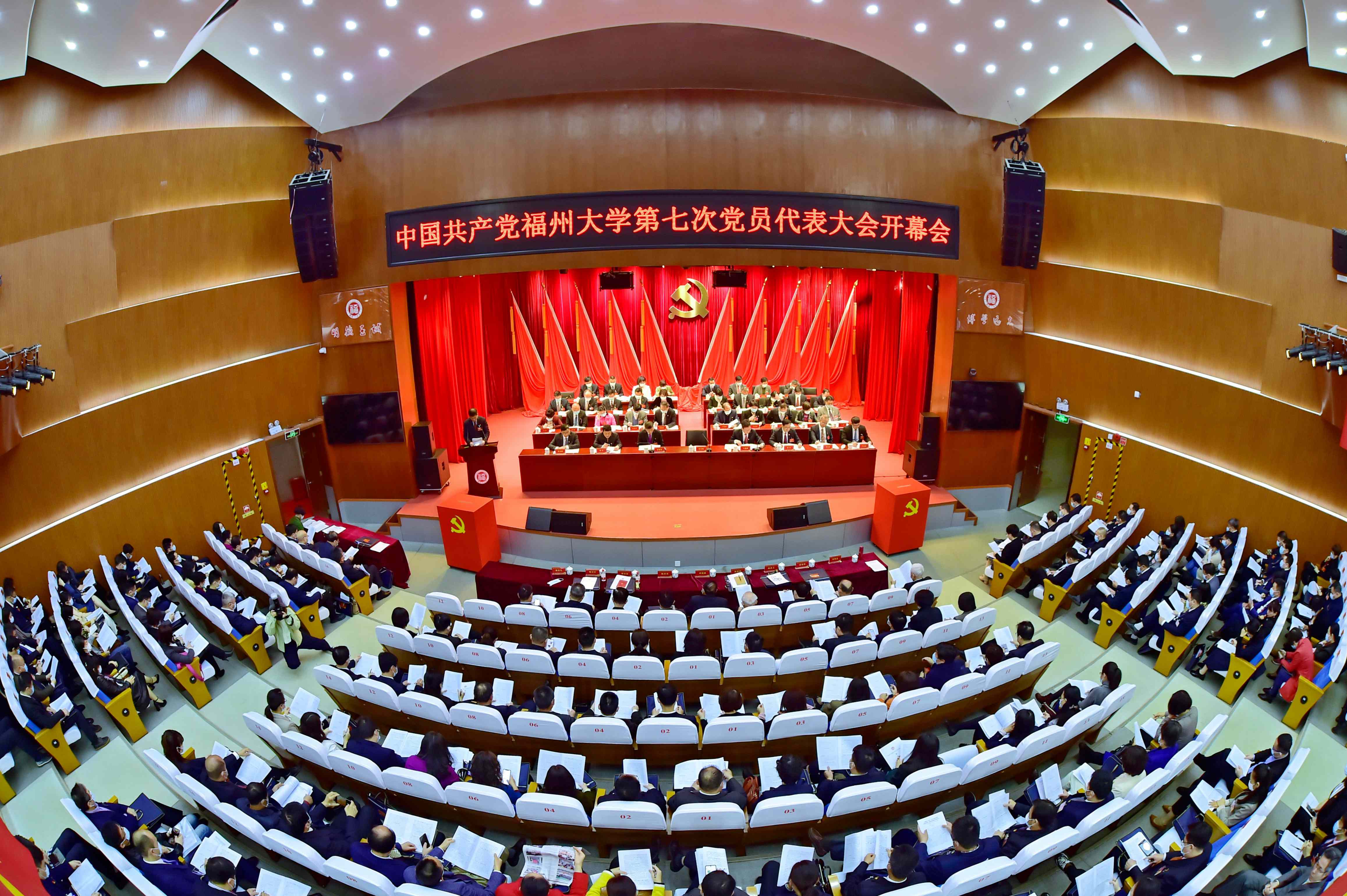 在雄壮的国歌声后,付贤智校长致开幕辞。他代表大会主席团和全体代表,向莅临大会的各位领导、各位来宾表示热烈的欢迎和衷心的感谢,并回顾了第六次党员代表大会以来福州大学发展历程,展望了未来的发展方向,并汇报了大会的主要议程。