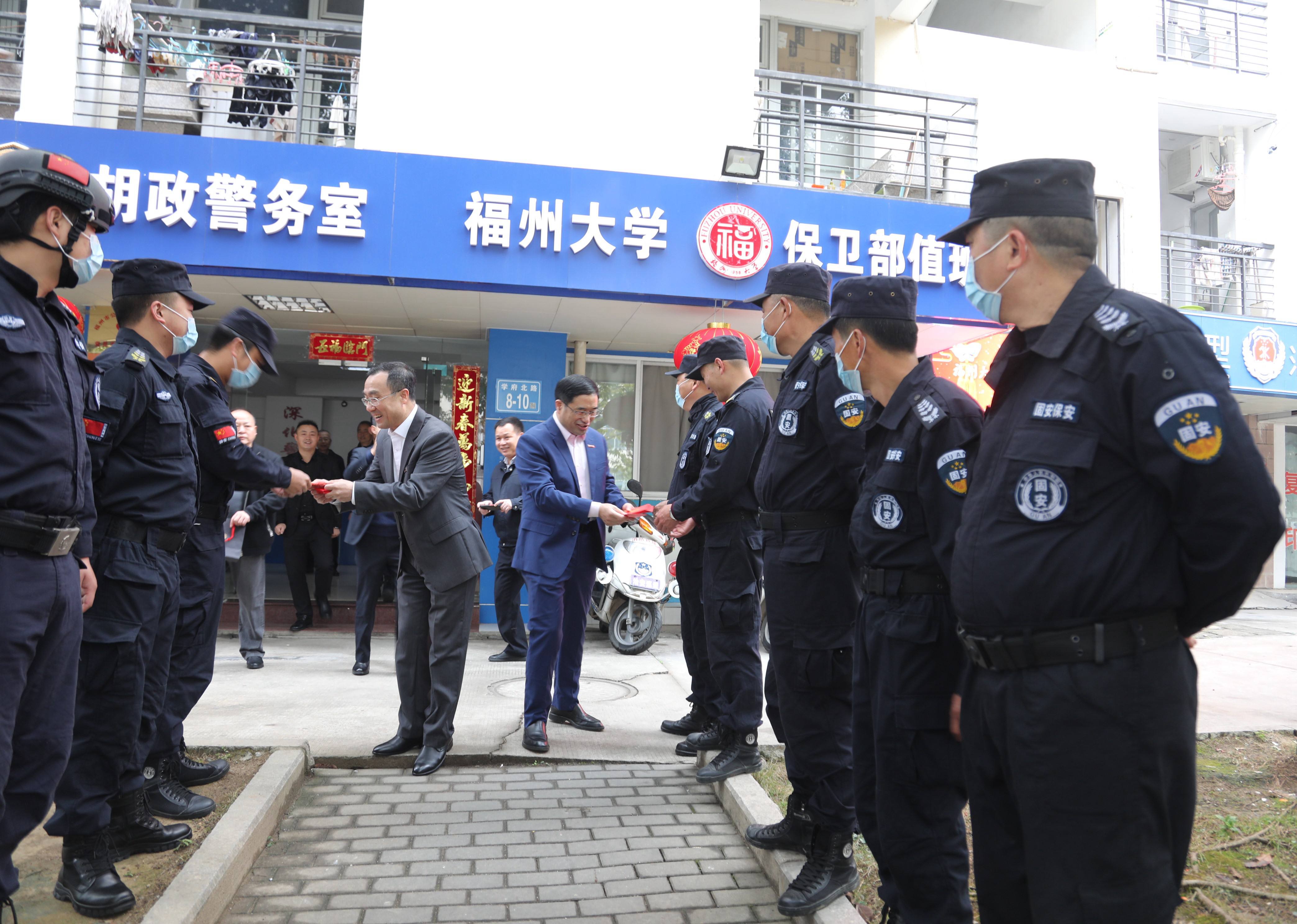 新闻中心讯/大年初一,校党委林生副书记、林键副校长在党办校办、学生工作(部)处、保卫部、校团委、后勤管理处等相关部门负责人的陪同下,看望慰问新春佳节坚守一线工作岗位的基层工作人员,代表学校向他们表示衷心的感谢和新春的问候。