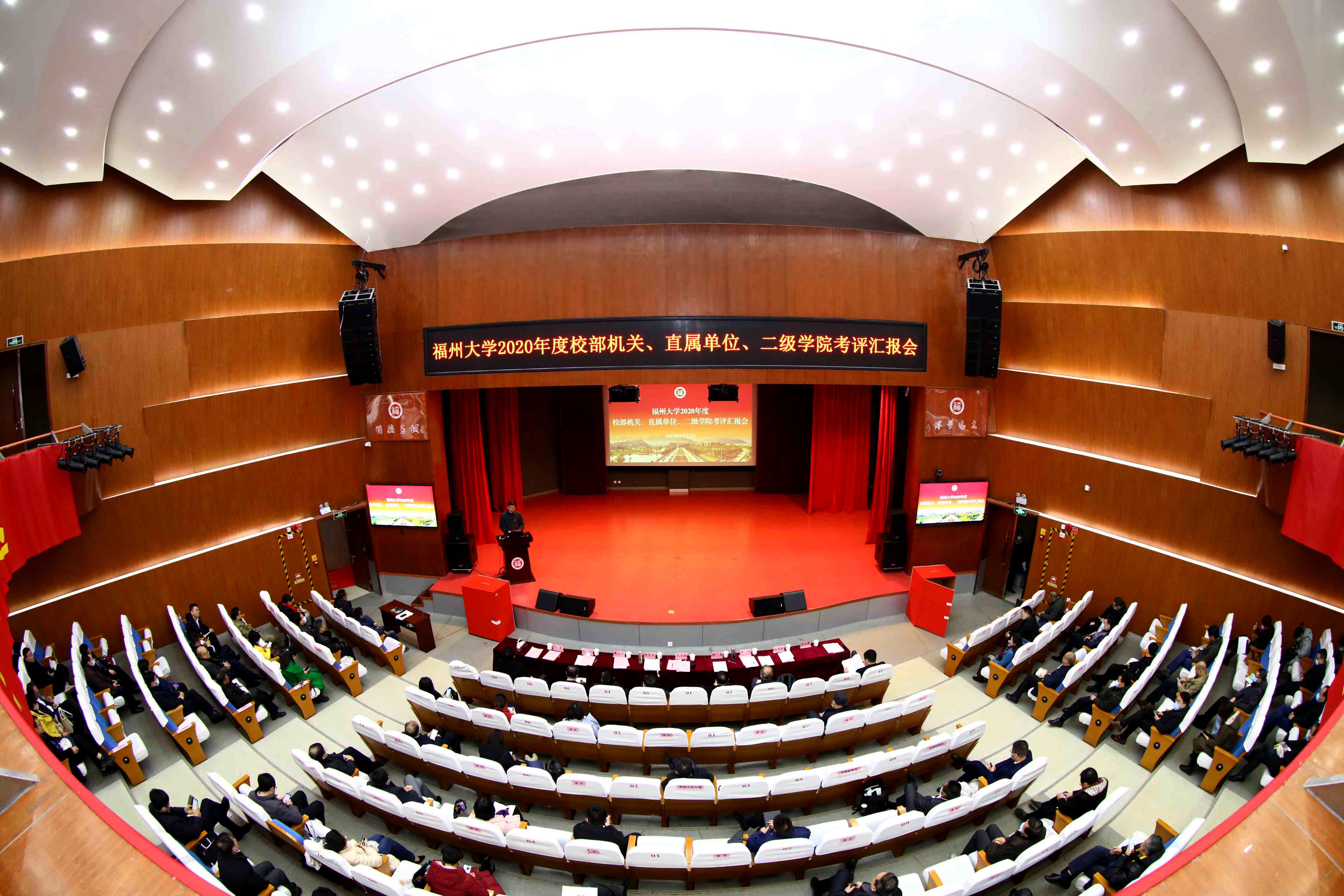 新闻中心讯/1月12日,2020年度校部机关、直属单位、二级学院考评汇报会在图书馆博学厅举行。全体校领导,考评小组全体成员,全校处级干部、部门工会主席,特邀监察员参加会议。会议由校党委张星副书记主持。