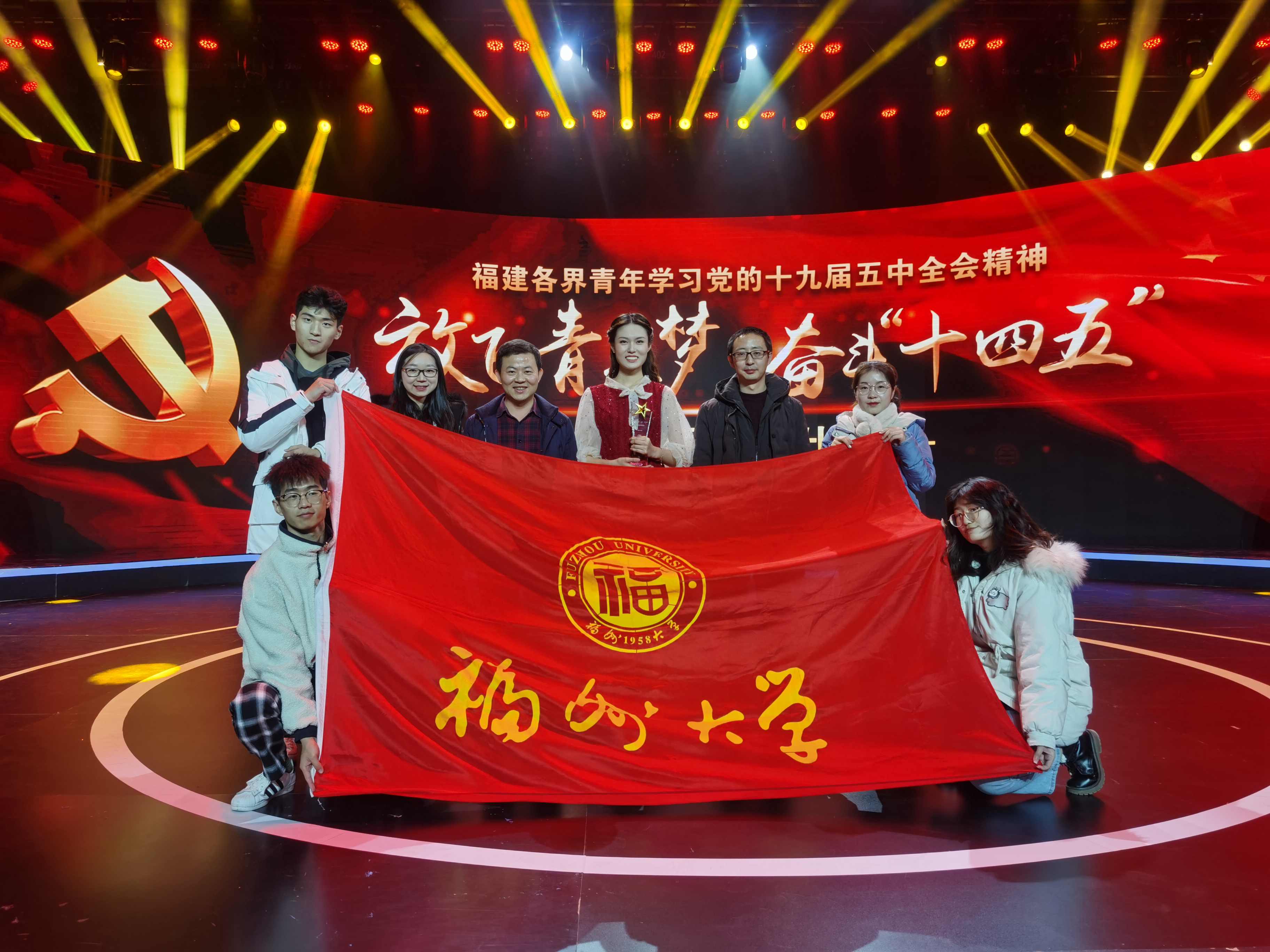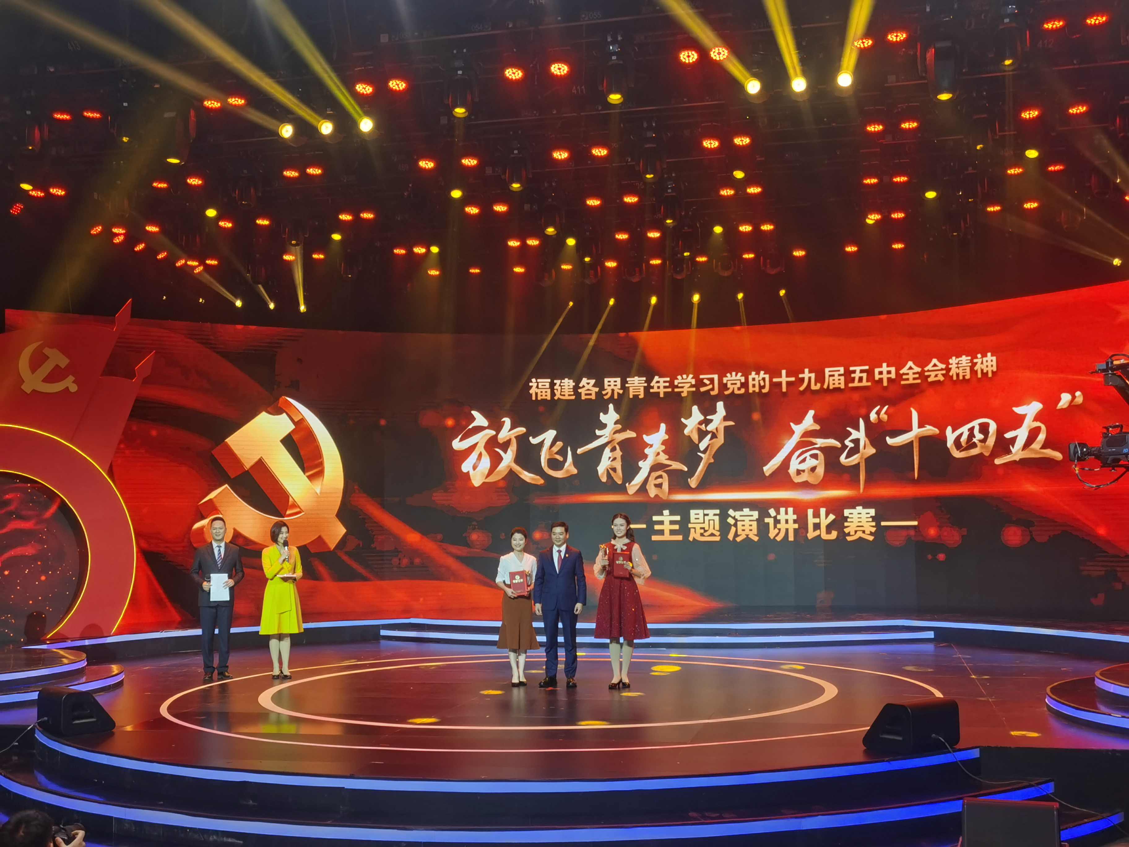 新闻中心讯/为深入学习宣传贯彻党的十九届五中全会精神,推动习近平新时代中国特色社会主义思想在广大青少年中落地生根,12月30日下午,由省委宣传部和团省委联合主办的“放飞青春梦·奋斗‘十四五’”——福建各界青年学习党的十九届五中全会精神主题演讲比赛在福州举行。福州大学参赛队伍喜获一等奖。
