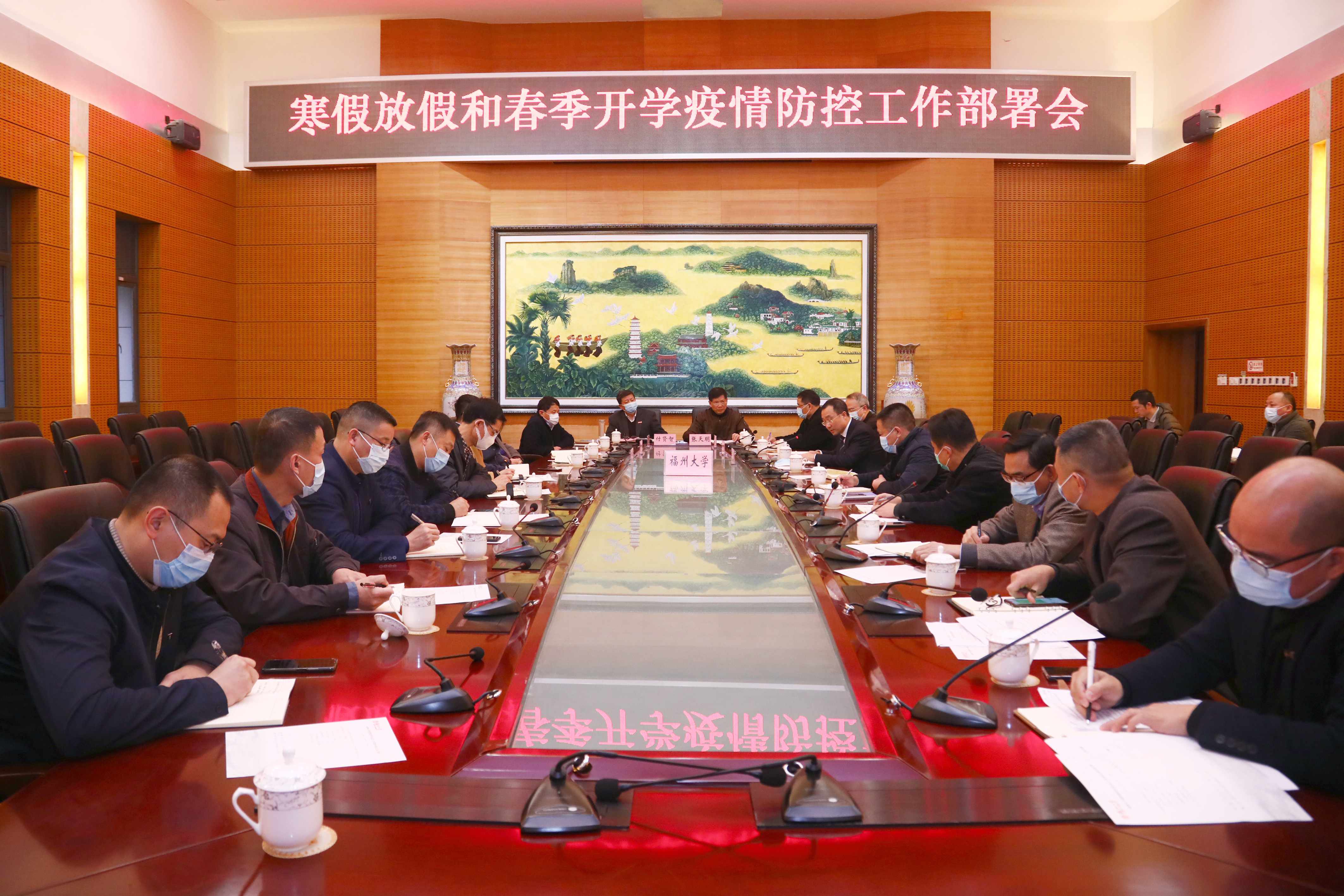 新闻中心讯/1月5日下午,福州大学在旗山校区行政南楼召开寒假放假和春季开学疫情防控工作部署会。校疫情防控及应急工作领导小组成员、相关职能部门负责人参加会议。会议由校党委书记张天明主持。