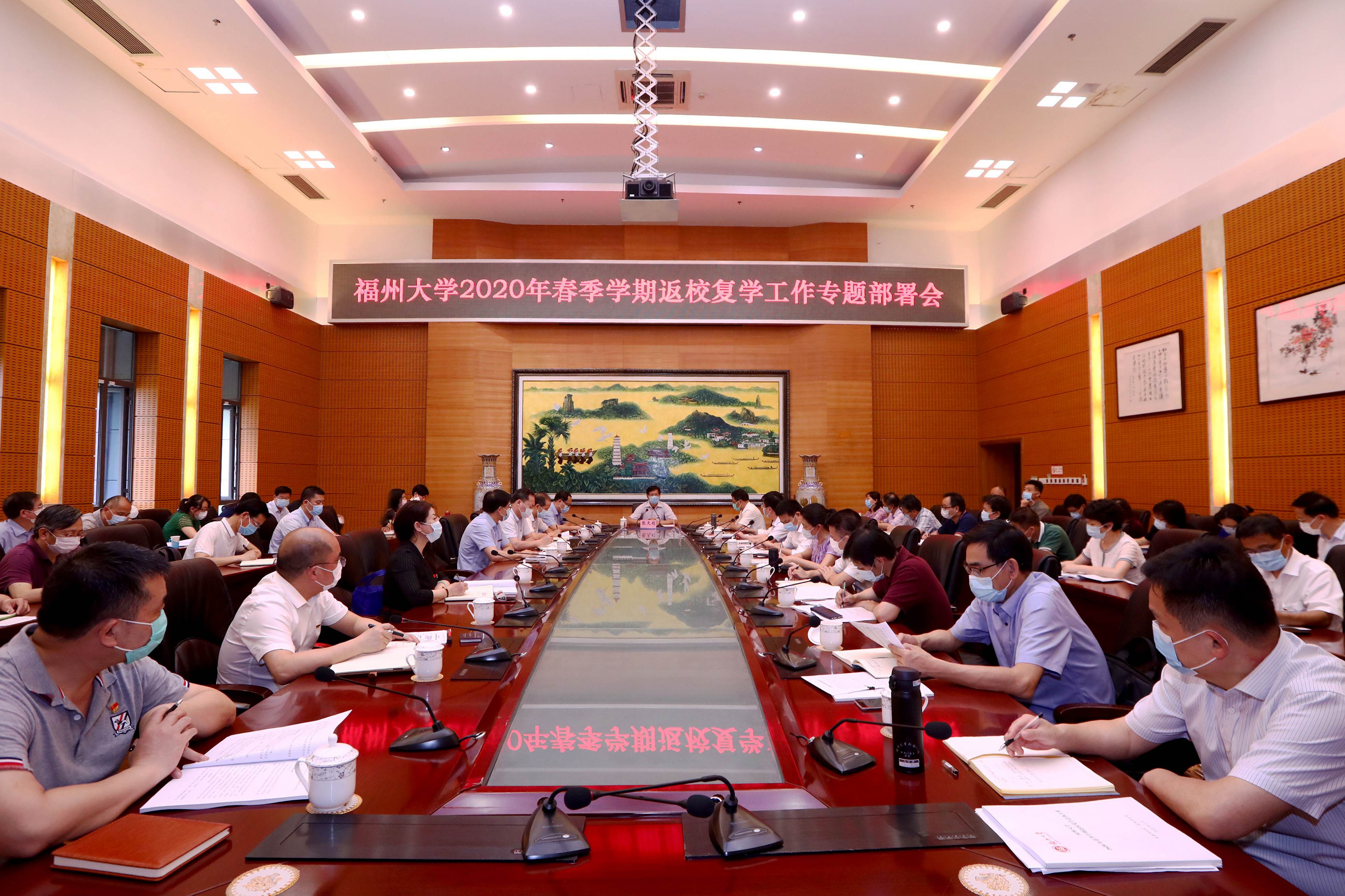 新闻中心讯/5月6日下午,福州大学2020年春季学期返校复学工作专题部署会在旗山校区召开。校领导张天明、林生、杨黄浩、林键出席会议。校疫情防控及应急工作领导小组成员、各学院书记、院长,校2020年春季学期返校复学工作领导小组各工作专班负责人参加会议。会议由校党委书记张天明主持。