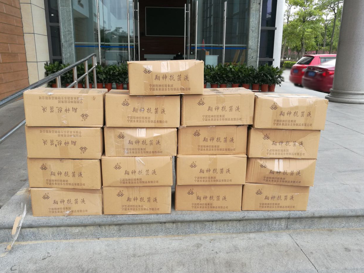 新闻中心讯/3月2日,宁波翔神集团向学校捐赠消毒液原夜2吨(可配消毒液20余吨),洗手液600瓶。在新冠疫情防控期间,石油化工学院侯琳熙教授团队在抗菌剂领域深入研究,与宁波翔神集团合作紧急开发消毒液,产品已应用到相关医疗机构、学校、机关、基层社区等。