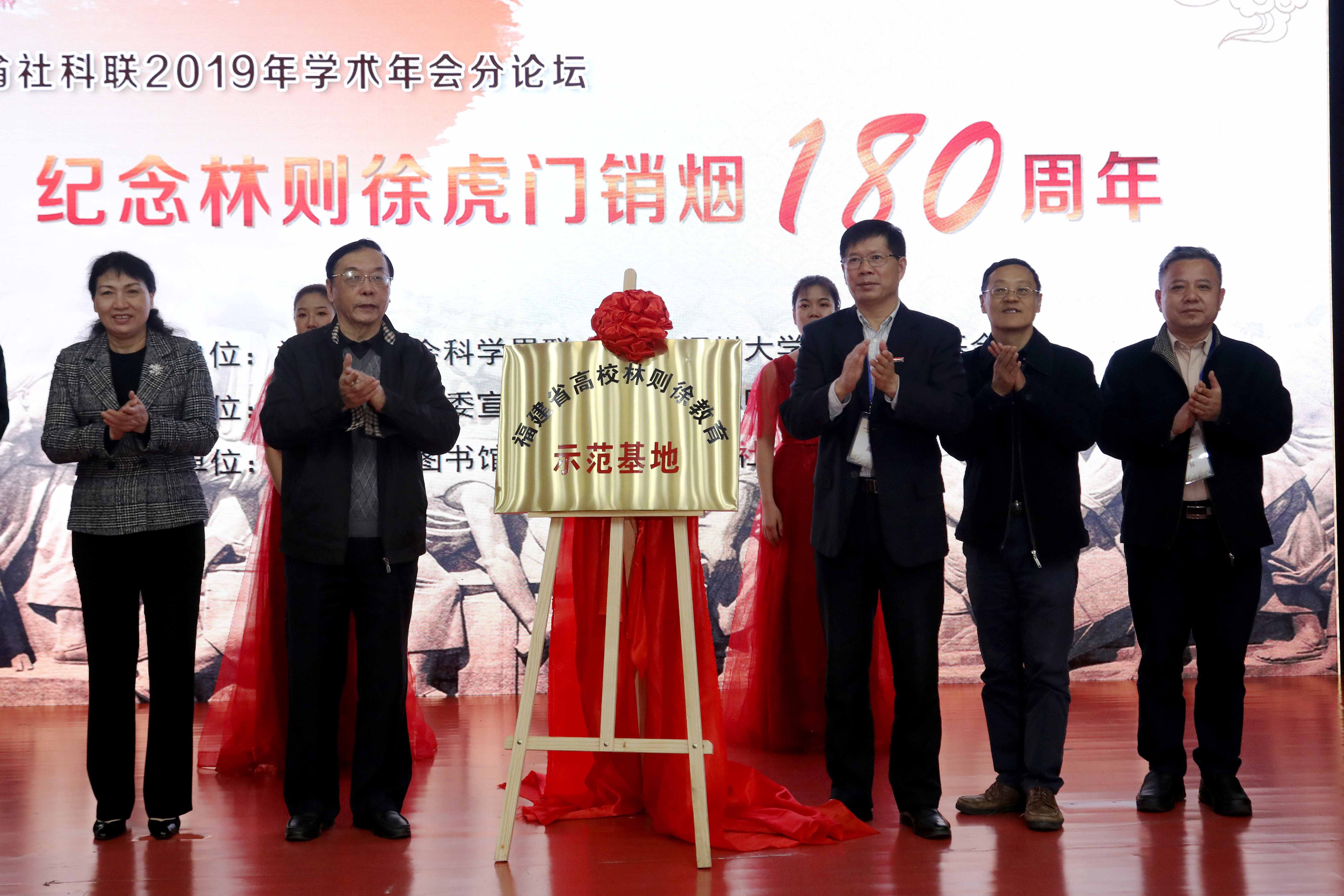 福建省社科联副主席王秀丽、五馆代表新疆伊犁林则徐纪念馆馆长赵红分别致辞。与会领导嘉宾为福建省委教育工委、省教育厅批准福州大学设立的“林则徐教育示范基地”揭牌。