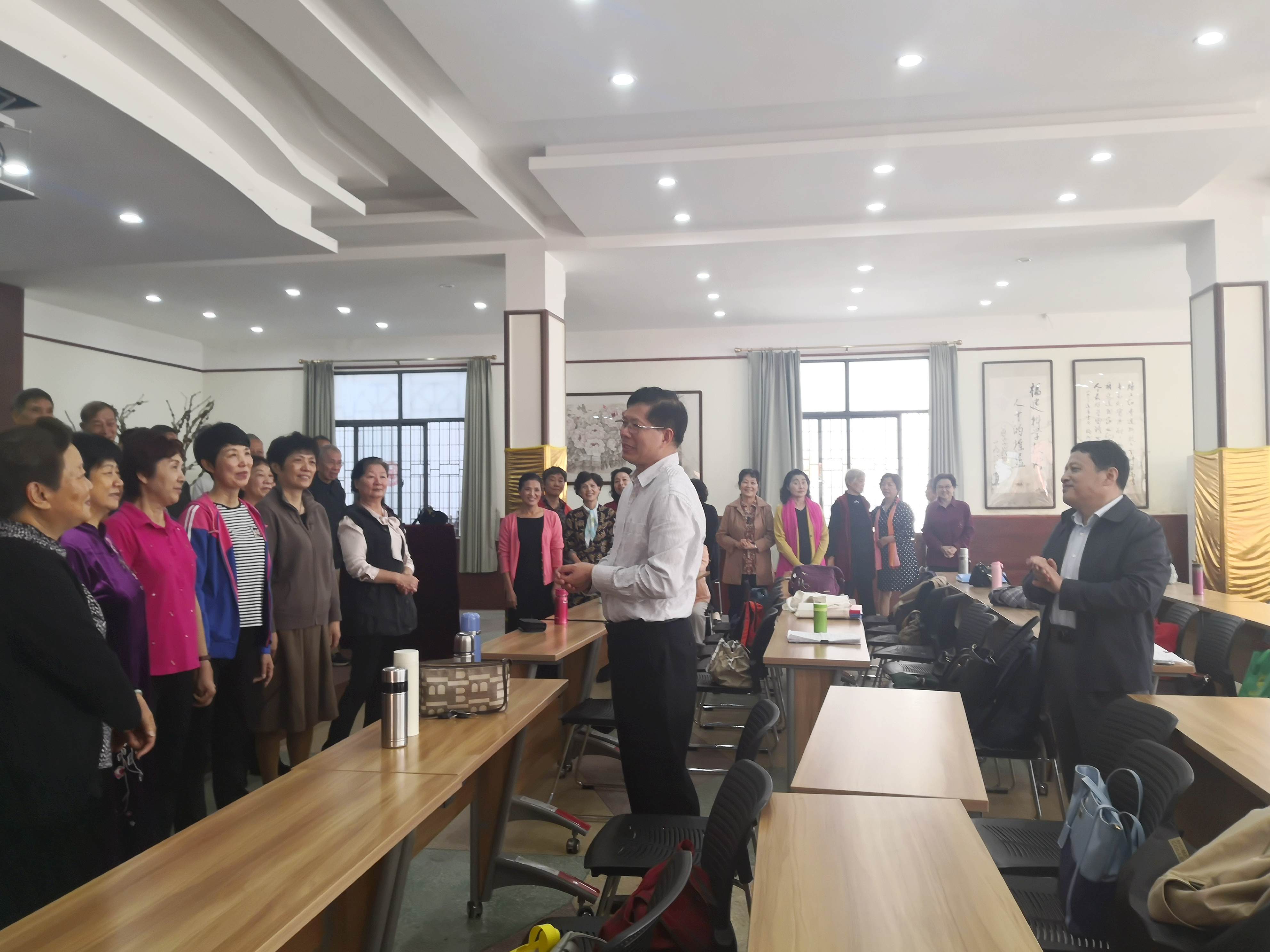 张天明书记在怡山校区调研期间,来到离退休处时晚霞合唱团动听的歌声在飘荡,他走进离退休处多功能厅看望为21日晚霞合唱团成立30周年专场音乐会而加班排练的老同志们,并预祝音乐会圆满成功。老同志们对校领导百忙之中前来看望深受鼓舞,纷纷表示将以饱满的热情投入排练,在即将到来的专场音乐会中向大家展示福大老教师的风采,努力唱响主旋律,助力双一流。(李松华)