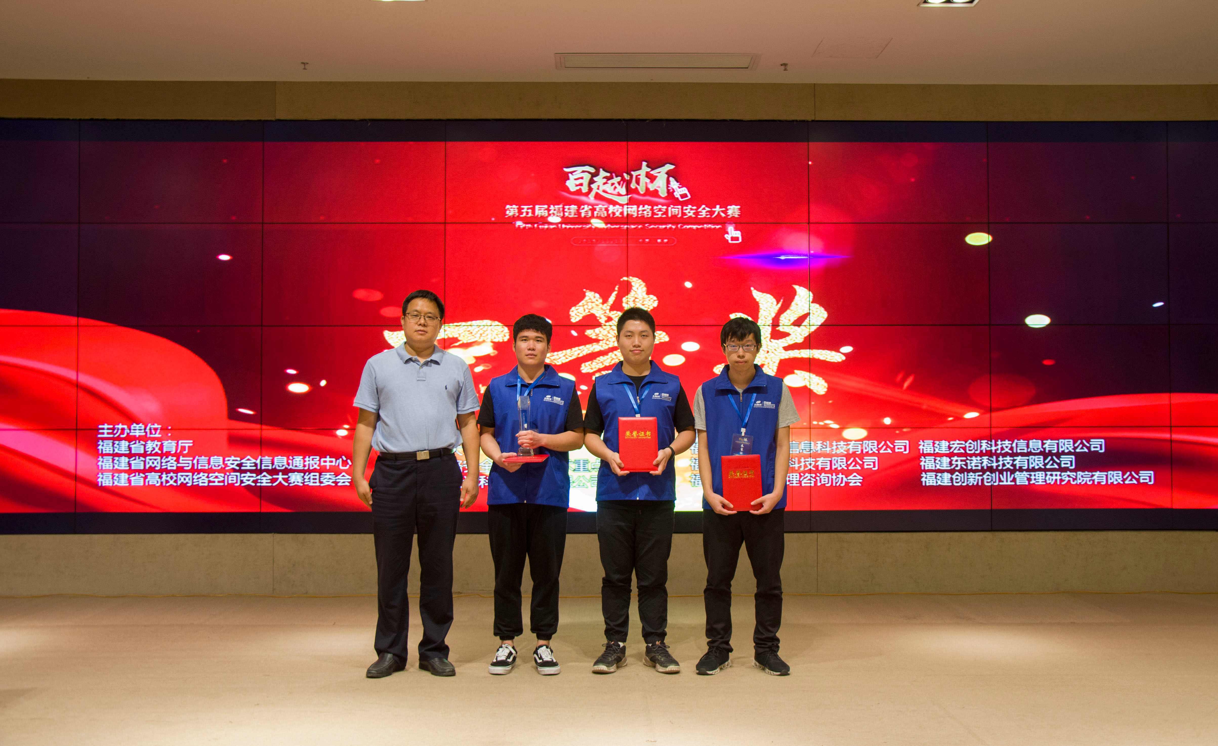 新闻中心讯/近日,由福建省教育厅、福建省网络与信息安全信息通报中心主办的第五届“百越杯”福建省高校网络空间安全大赛在福州落下帷幕。经过激烈争逐,福州大学RO1S代表队(数计学院本科生:阮建敏、曾俊杰、蔡建斌)和RO2S代表队(数计学院本科生:熊波、饶光赫、梁锦煌(物信学院本科生)),在指导教师何萧玲带领下,自开赛便一路遥遥领先,最终以高分优势再度王者加冕,分获本届大赛的冠、亚军及一、二等奖,迄今为止,福州大学代表队已经连续五届以绝对优势摘得该项赛事桂冠。