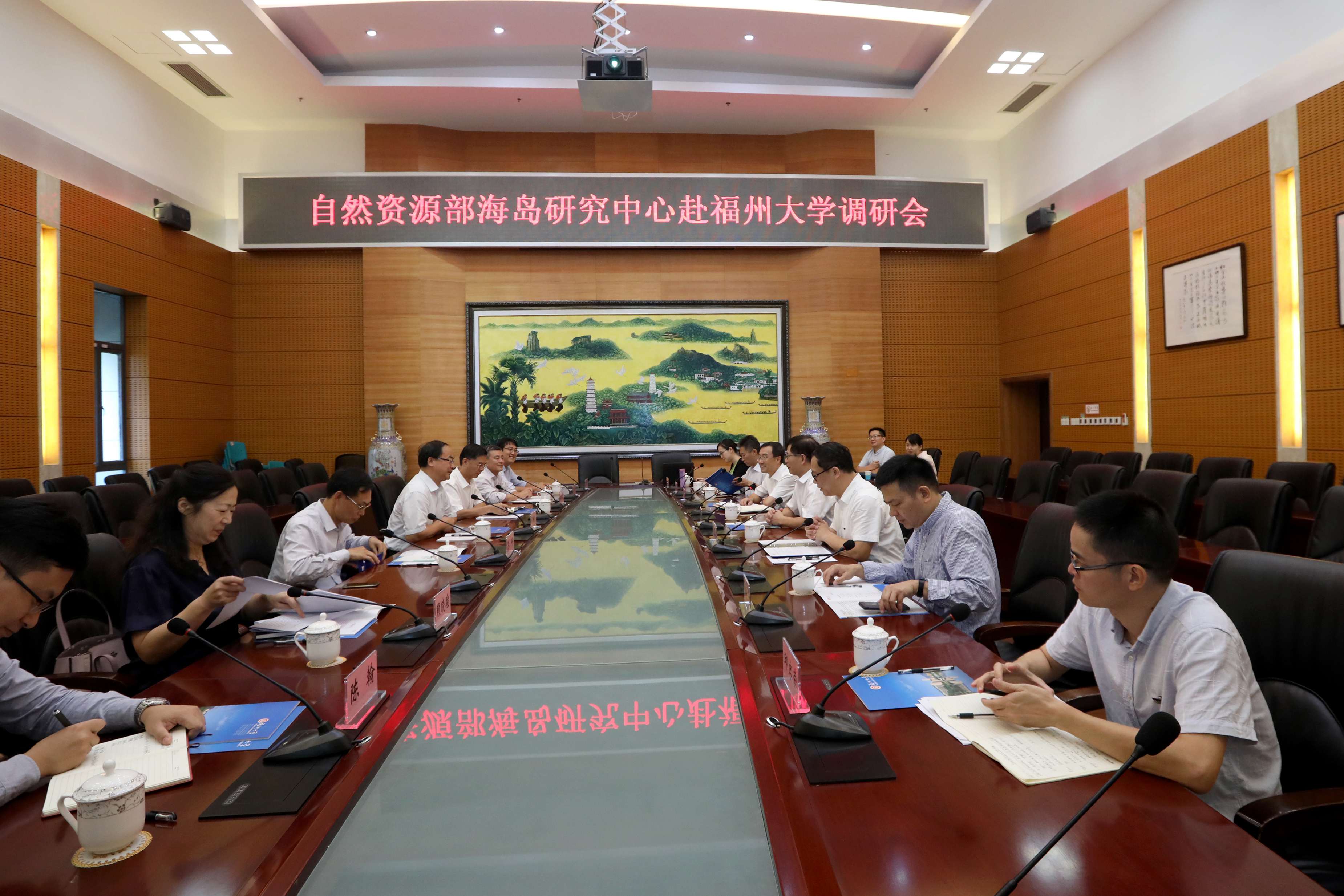 新闻中心讯/10月17日上午,自然资源部海岛研究中心侯纯扬主任一行来福州大学调研,福州大学党委书记张天明、副校长杨黄浩会见侯纯扬主任一行并举行座谈,党办校办、研究生院、科技开发部、科技处、社会科学研究管理处相关负责人参加会议。双方各自介绍了概况,回顾了合作渊源,指出双方有共通的合作基础,并就人才培养与交流、科技创新与成果转化、资源共享等方面展开交流。双方期待在未来建立密切的合作关系,实现资源共享共通,就如何进一步深化合作关系,会议指出还需进一步探讨。