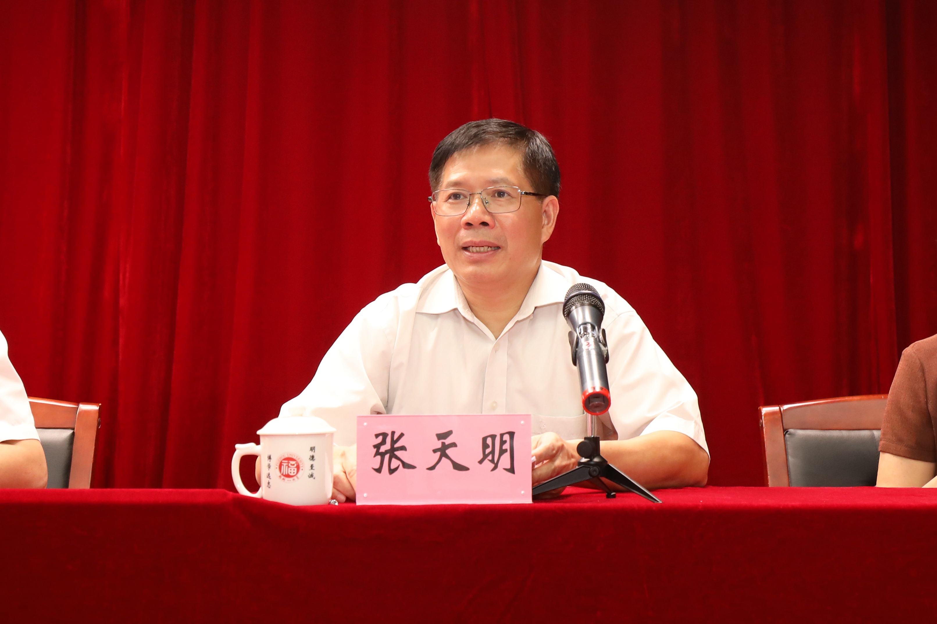会上,杨国豪常务副部长宣读了省委关于福州大学党委书记职务的任免决定:张天明同志任中共福州大学委员会委员、常委、书记;因年龄原因,陈永正同志不再任中共福州大学委员会书记、常委、委员。