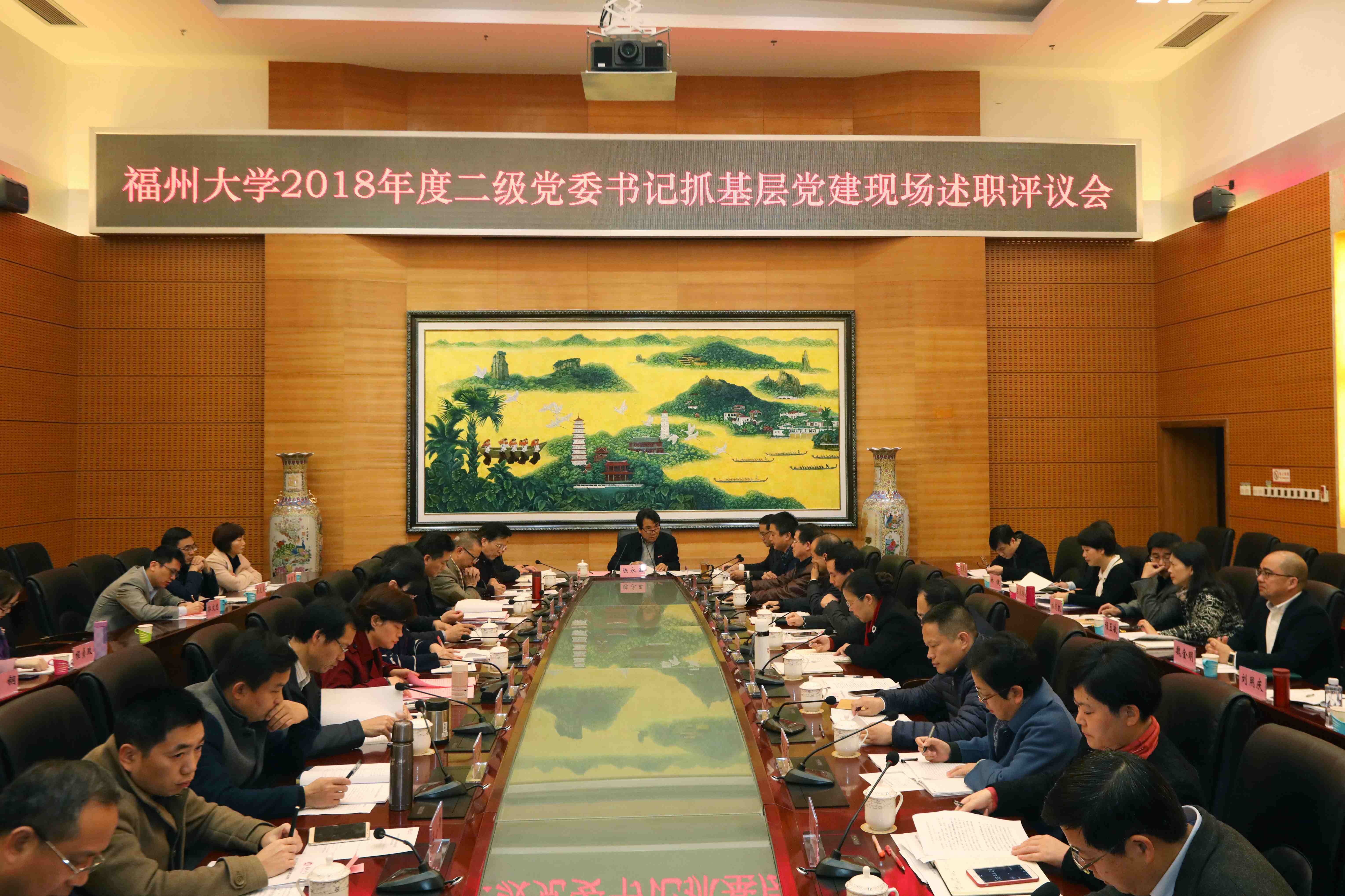 新闻中心讯/1月8日上午,福州大学2018年度二级党委书记抓基层党建现场述职评议会在旗山校区召开。校党委书记陈永正,副书记林生,校党委常委、副校长张星等出席会议,会议由林生副书记主持。