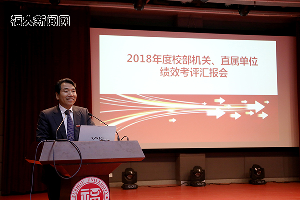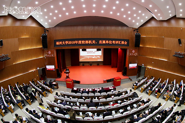 新闻中心讯/1月9日上午,福州大学2018年度校部机关、直属单位绩效考评汇报会在图书馆博学厅举行。全体校领导,考核工作小组全体成员,校党代会、教代会代表,各学院书记、院长、党委办公室主任、学院办公室主任,校部机关、直属单位负责人,特邀监察员以及教职工代表等300多人参加会议。会议由张星副校长主持。