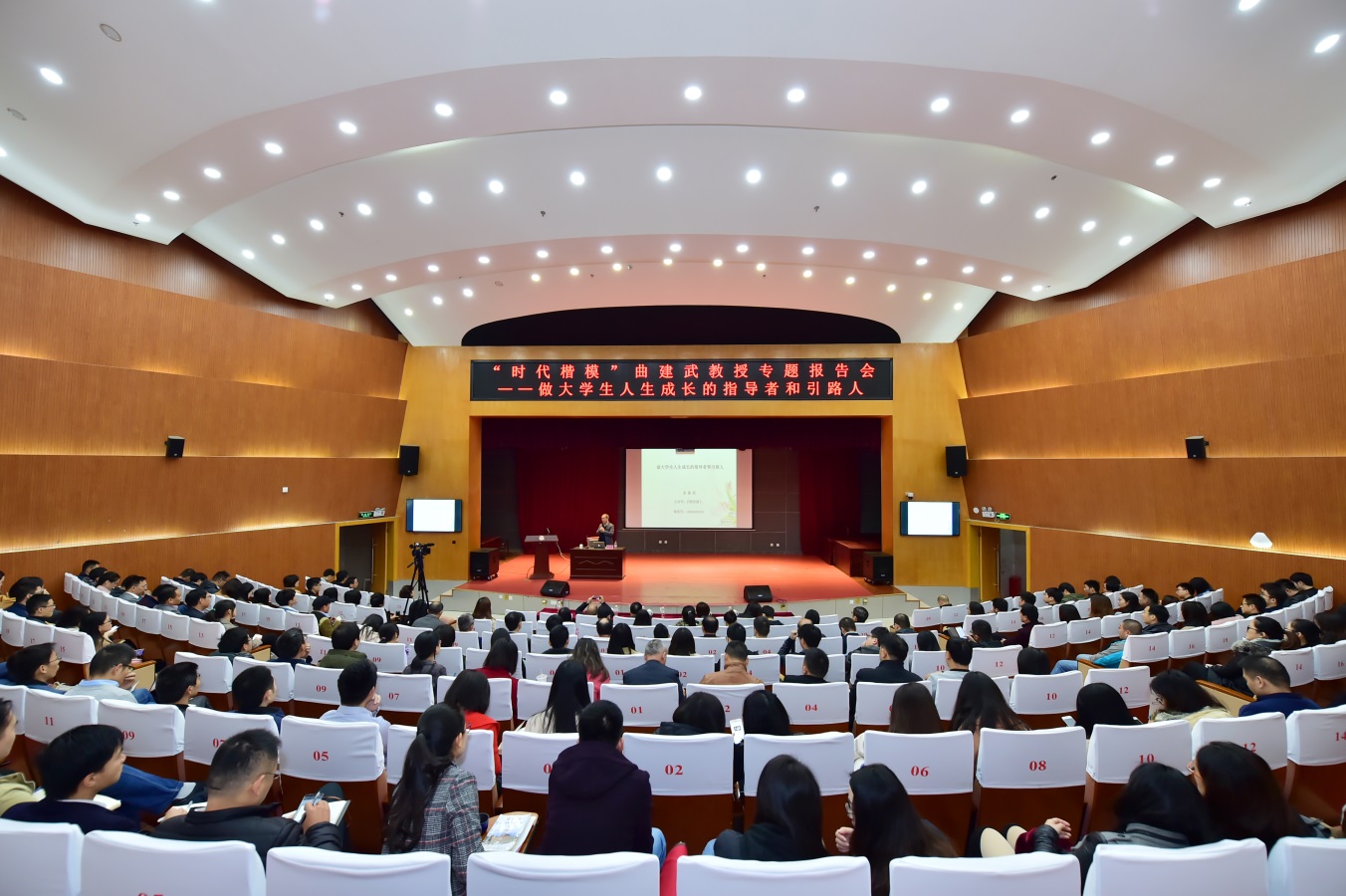 新闻中心讯/12月19日上午,“时代楷模”曲建武教授莅临福州大学,为师生作了题为“做大学生人生成长的指导者和引路人”的主题报告。报告会由校党委副书记林生主持,学生工作部(处)、校团委等负责人,全体学生政工干部以及学生代表200多人参加了报告会。