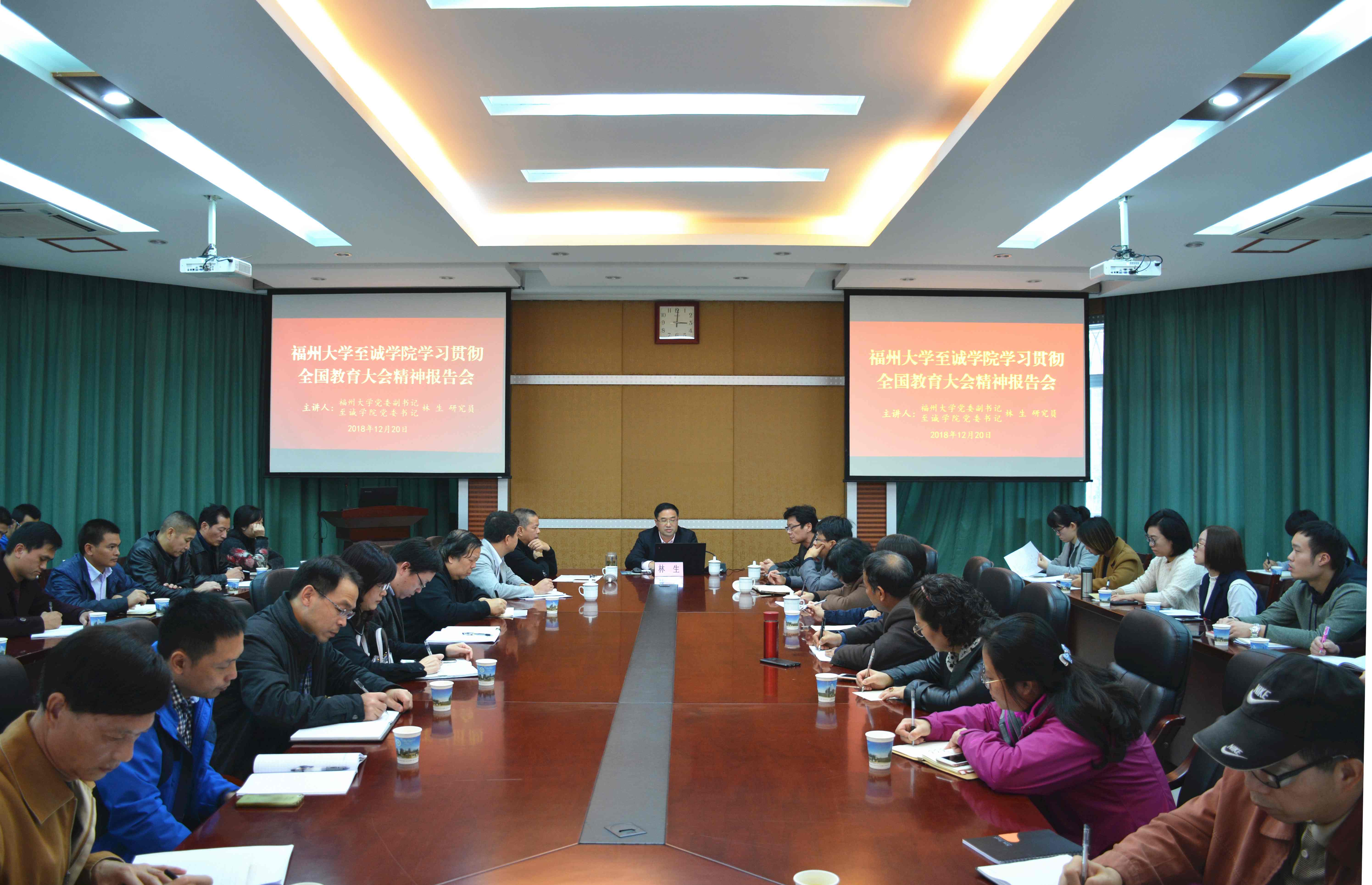 新闻中心讯/12月20日下午,至诚学院学习贯彻全国教育大会精神报告会在至诚学院行政楼会议室举行。林生副书记为至诚学院全体院领导、中层干部、各党总支书记和副书记、教工党支部书记作了“深入学习贯彻全国教育大会精神”的主题报告。