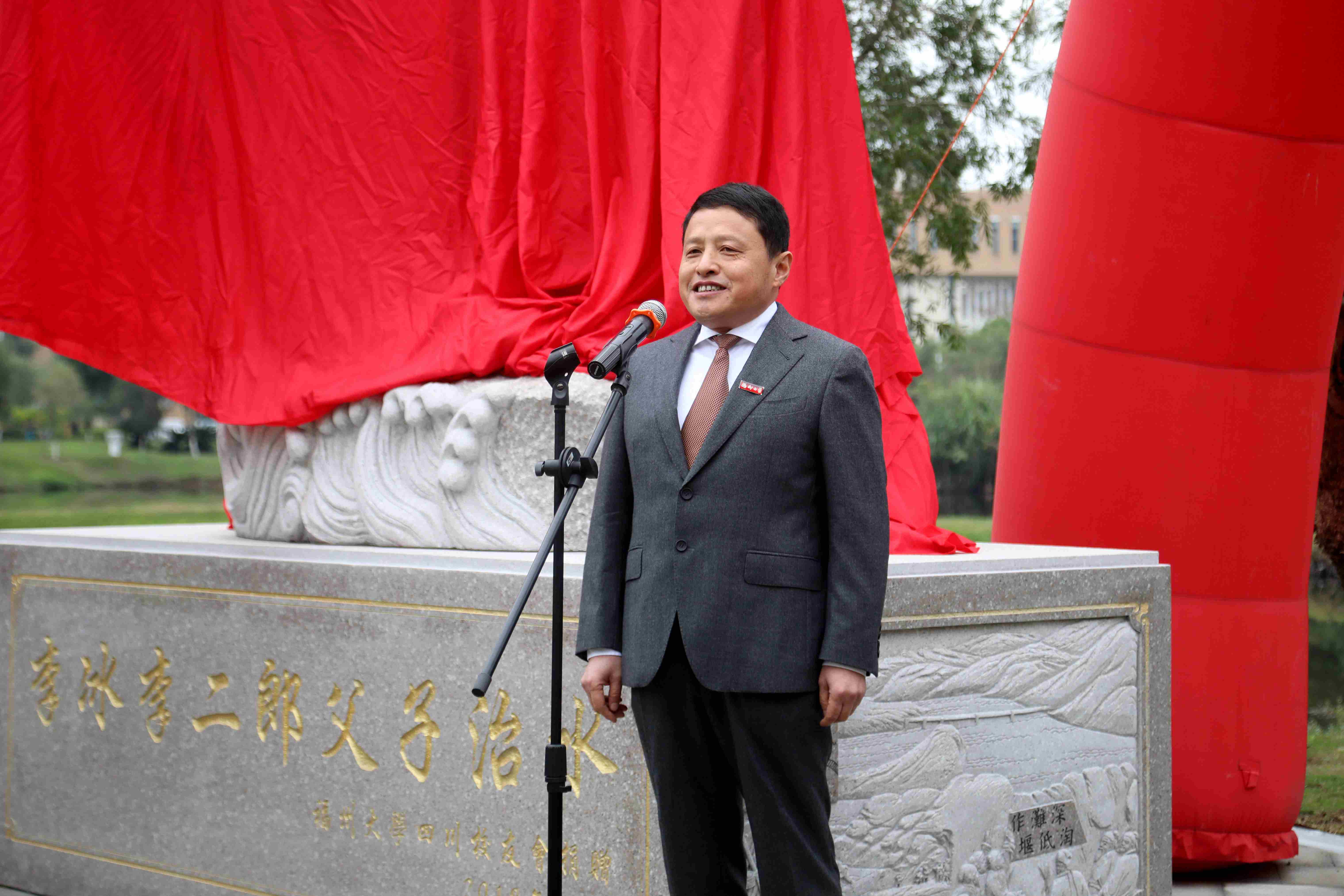 张星副校长代表学校对四川校友会的慷慨捐赠表示感谢。他阐述了战国时期李冰带领儿子在治水方面的功德和精神,他表示,今年是福州大学建校60周年,四川校友会捐赠大型李冰父子塑像,不仅为学校增添了一道独特的人文景观,而且有助于将四川元素和水利文化元素融入到我校校园文化建设当中,对于促进我校水利专业教学及扩大学科影响力具有着重要作用。广大师生应学习科学、创新、奋斗的李冰精神,弘扬中华民族优秀传统文化,将李冰父子的治水精神与新时代的具体实际相结合,在各自的岗位上努力做出新的更大的贡献。