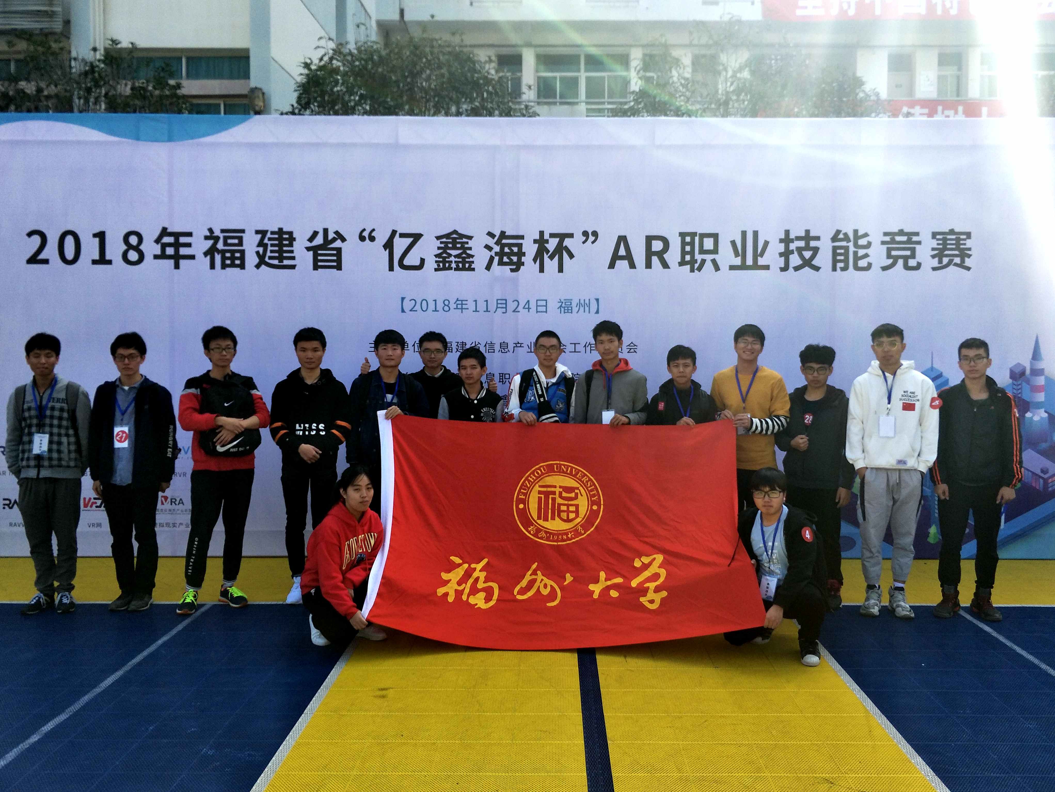 新闻中心讯/11月24日,2018年福建省“亿鑫海杯”AR职业技能竞赛决赛在福建信息职业技术学院举办。经过激烈角逐,全省共计28支队伍成功进入决赛。福州大学VR畅游协会在机电中心禹杰老师指导下,选派7个参赛队参加,全部进入决赛,并取得了第三、五、六、七名的好成绩。