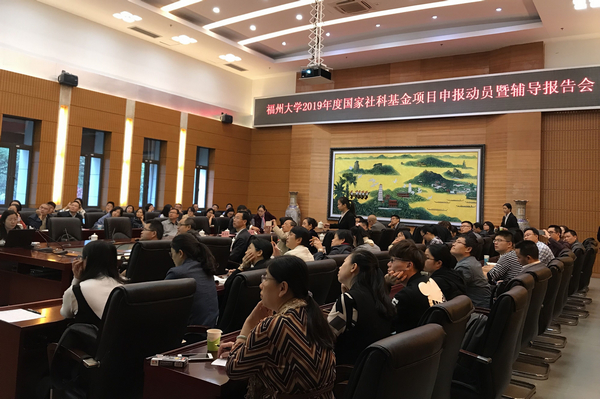 新闻中心讯/11月1日下午,福州大学2019年度国家社科基金项目申报动员暨辅导报告会在行政南楼123会议室召开。副校长黄志刚出席会议,校社科处、各社科学院院长、分管科研工作副院长、相关单位负责人、科研干事等60余人参加了会议。