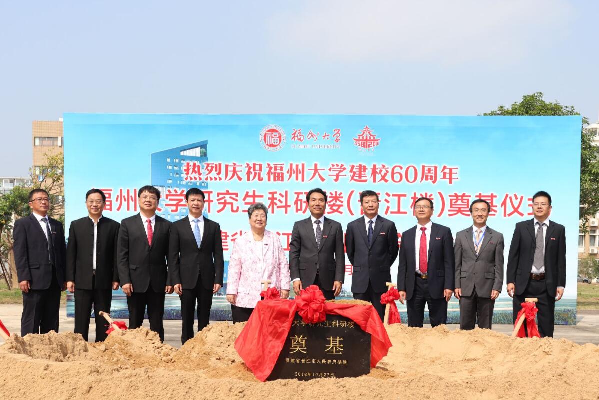 新闻中心讯/10月27日上午,福州大学研究生科研楼(晋江楼)奠基仪式在旗山校区东门北侧建设地点举行。第十二届全国政协委员、中国侨联第十届委员会常委、杰出校友陈聪聪女士,泉州市委常委、晋江市委书记刘文儒,晋江市委副书记、市长张文贤,晋江市政协主席林仁达,晋江市副市长黄少伟以及福州大学党委书记陈永正、校长付贤智、黄志刚副校长等领导嘉宾出席仪式。
