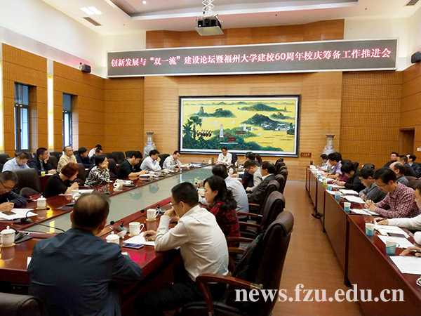 新闻中心讯/10月17日下午,福州大学在行政南楼123会议室召开创新发展与“双一流”建设论坛暨庆祝福州大学建校60周年校庆筹备工作推进会。校党委书记陈永正出席会议并讲话,校党委副书记林生主持会议。