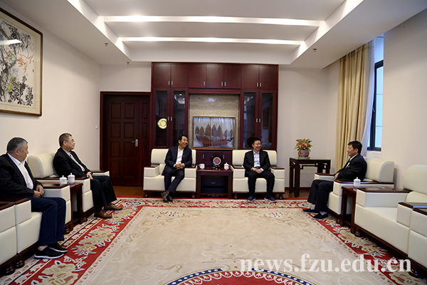 新闻中心讯/10月19日下午,阳光学院陈少平书记、乔海曙校长一行来访福州大学,校党委书记陈永正、校长付贤智在行政南楼306室会见客人。座谈会上,陈永正书记和付贤智校长对陈少平书记、乔海曙校长一行的来访表示热烈欢迎,并回顾了双方合作的历史渊源,就人才培养、科研创新、师资队伍建设等方面进行了交流与探讨。为庆贺福州大学60周年校庆,阳光学院还赠送福大一幅画作作为贺礼。(图/蓝苗)