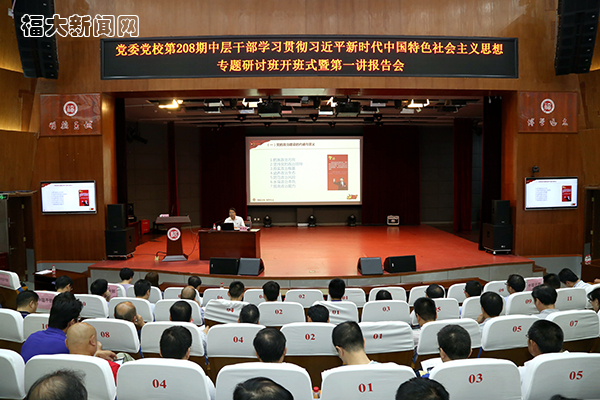 新闻中心讯/9月27日下午,福州大学党委党校第208期中层干部学习贯彻习近平新时代中国特色社会主义思想专题研讨班、207期教工党支部书记培训班开班式暨第一讲报告会在图书馆博学厅举行。校党委书记陈永正出席开班式,作了主题为“深入学习习近平新时代中国特色社会主义思想 贯彻落实全国教育大会精神”的专题报告。全校中层干部、教工党支部书记、学生政工干部等共计500余人参加了会议。